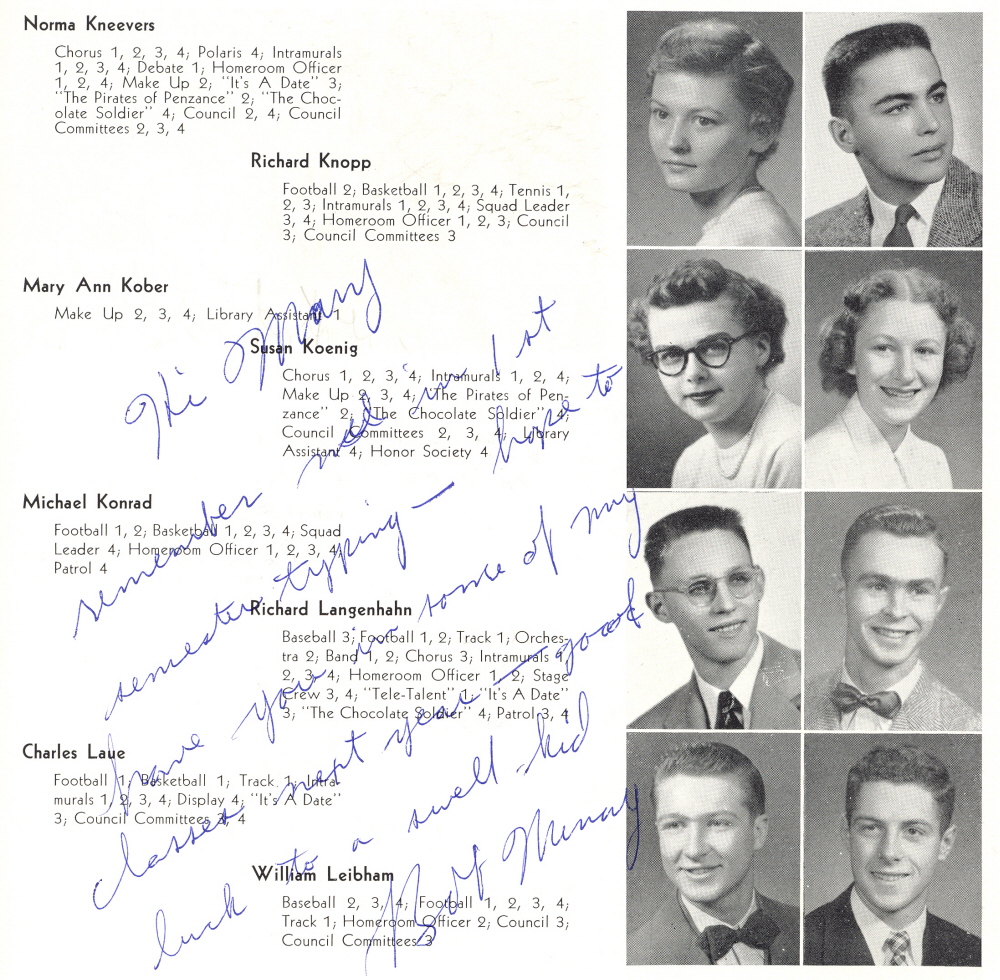 1953 Sheboygan North High School, Page 27: Norma Kneevers, Richard Knopp, Mary Ann Kober, Susan Koenig, Michael Konrad, Richard Langenhahn, Charles Laue, William Leibham.