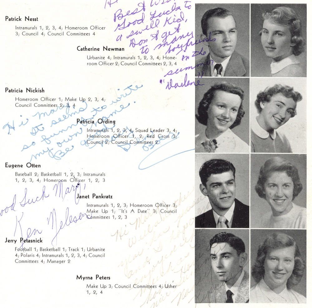1953 Sheboygan North High School, Page 31: Patrick Nesst, Catherine Newman, Patricia Nickish, Patricia Ording, Eugene Otten, Janet Pankratz, Jerry Petasnick, Myrna Peters.
