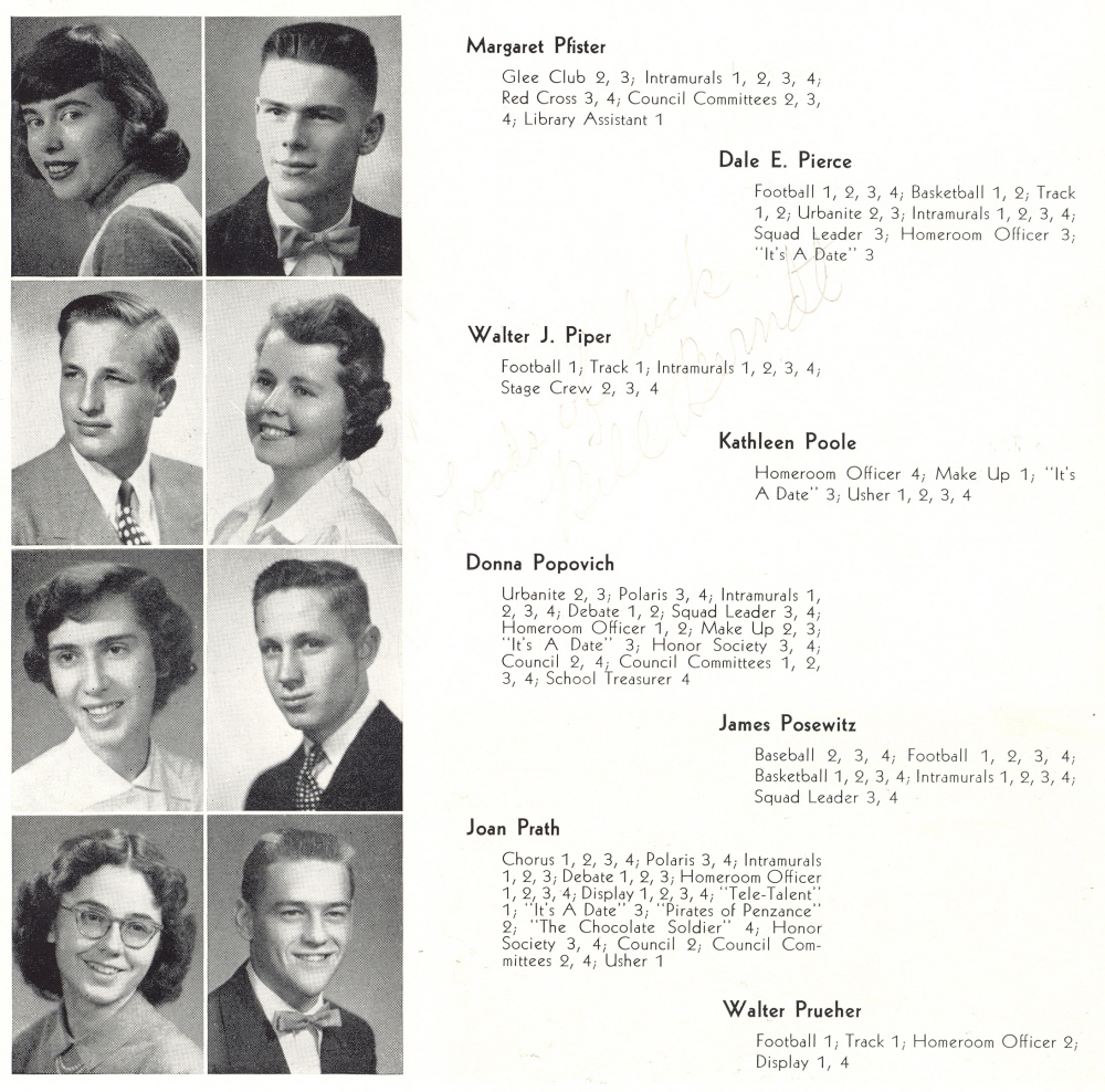 1953 Sheboygan North High School, Page 32: Margaret Pfister, Dale Pierce, Walter Piper, Kathleen Poole, Donna Popovich, James Posewitz, Joan Prath, Walter Prueher.