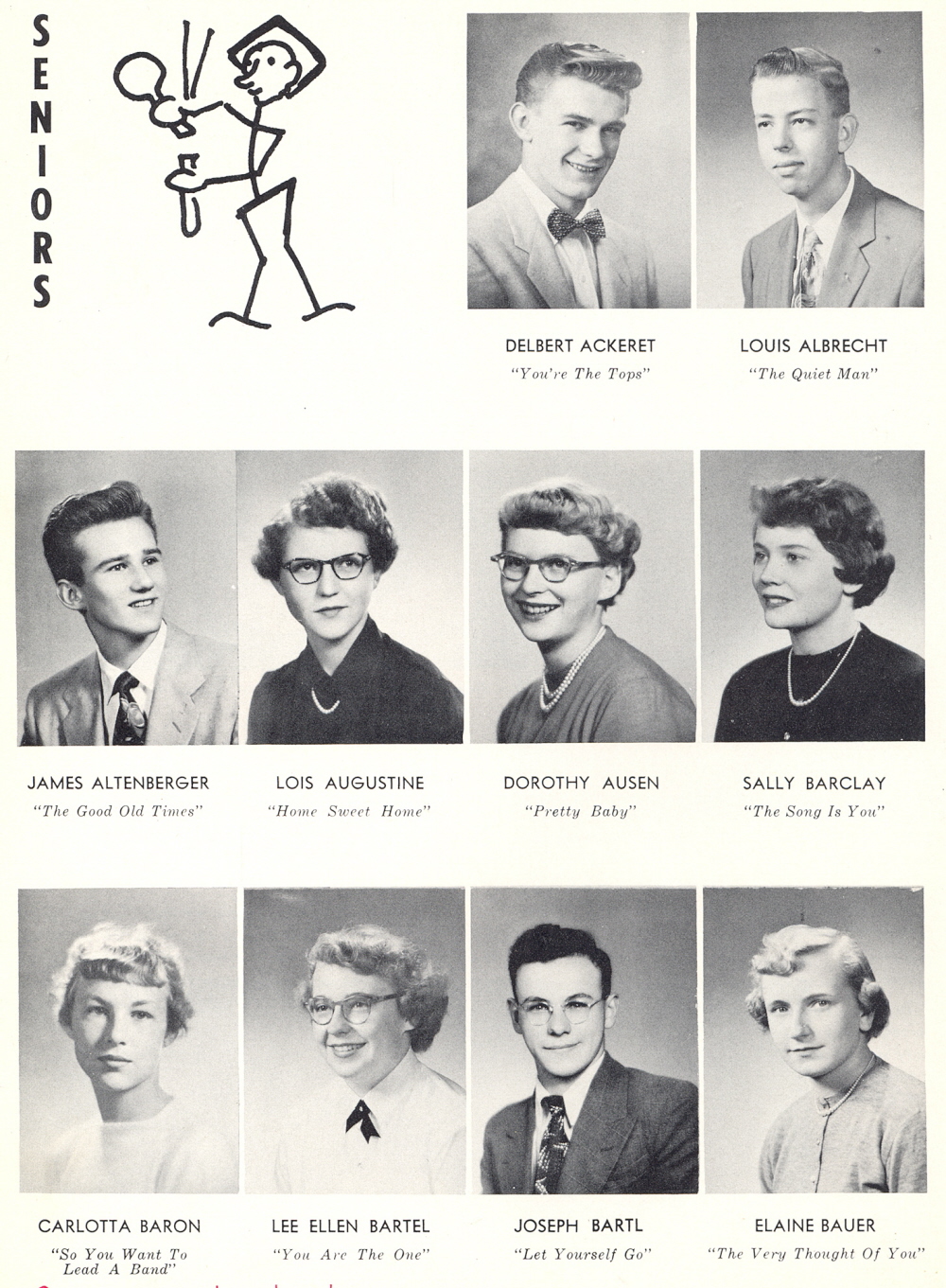 1954 Sheboygan Central High School, Page 20: Delbert Ackeret, Louis Albrecht, James Altenberger, Lois Augustine, Dorothy Ausen, Sally Barclay, Carlotta Baron, Lee Bartel, Joseph Bartl, Elaine Bauer.