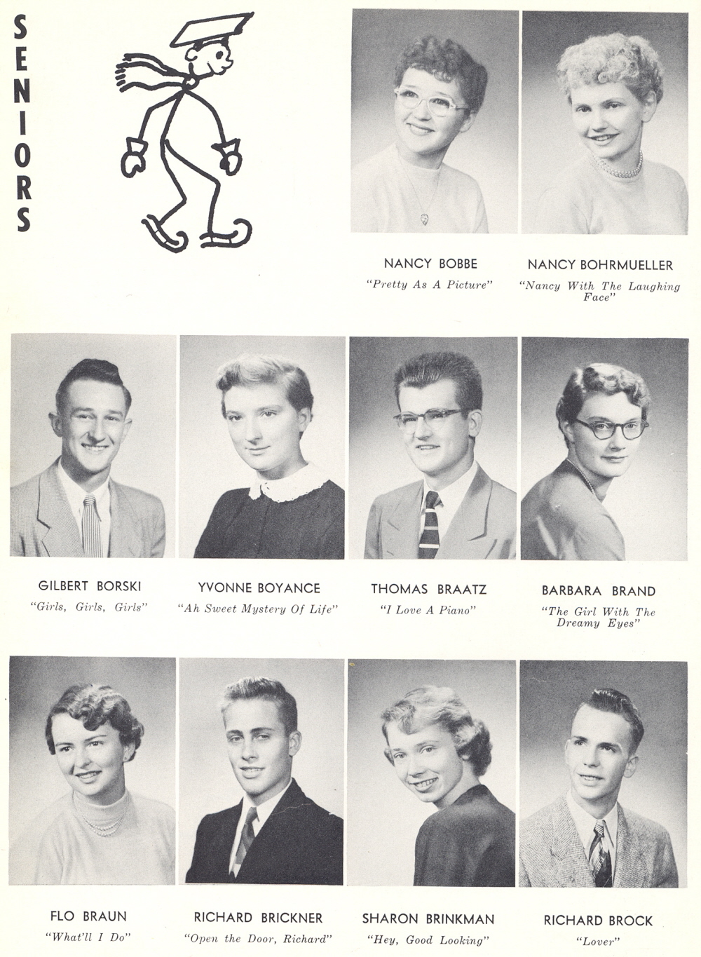 1954 Sheboygan Central High School, Page 22: Nancy Bobbe, Nancy Bohrmueller, Gilbert Borski, Yvonne Boyance, Thomas Braatz, Barbara Brand, Flo Braun, Richard Brickner, Sharon Brinkman, Richard Brock.