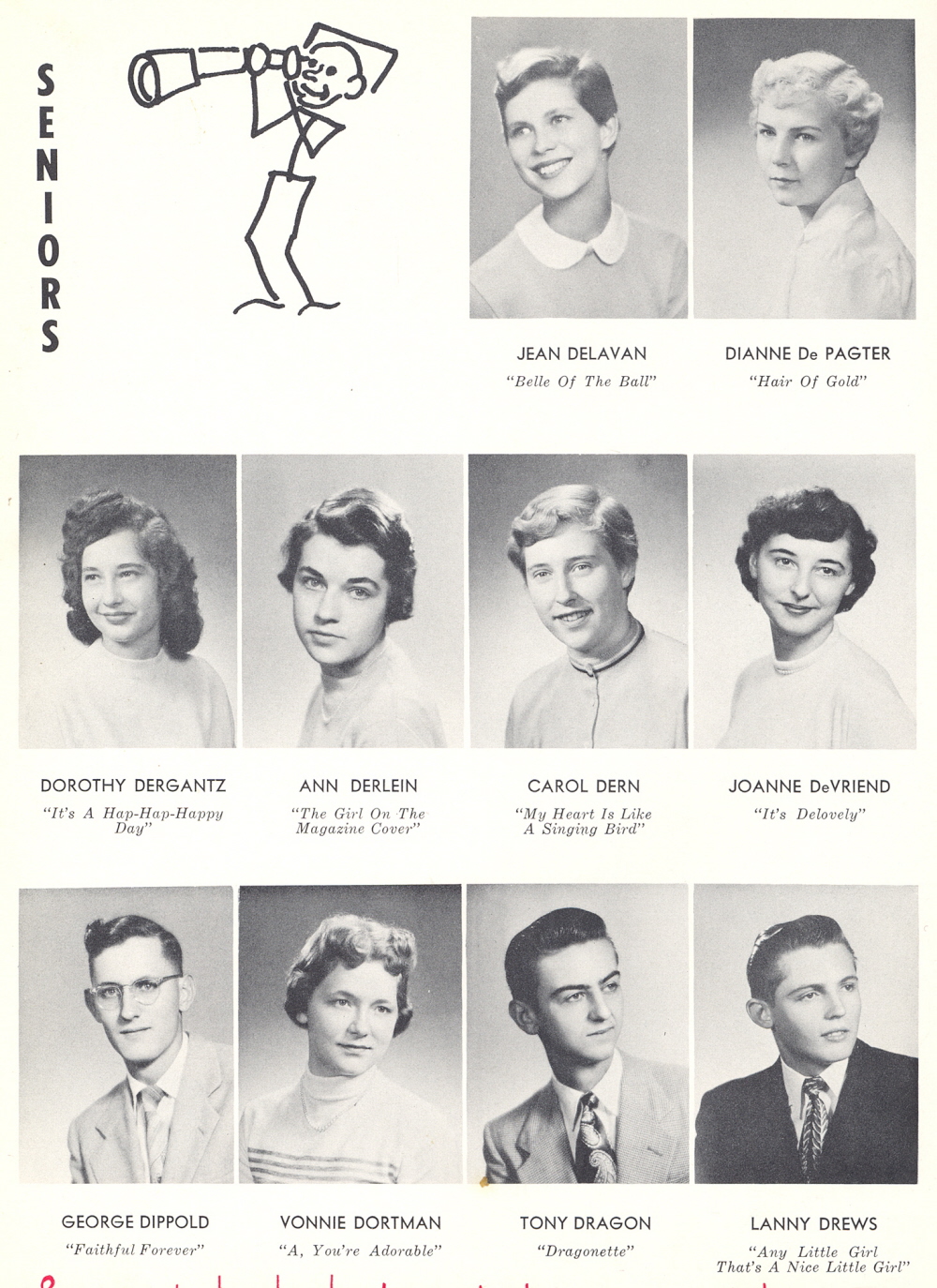 1954 Sheboygan Central High School, Page 26: Jean Delavan, Dianne De Pagter, Dorothy Dergantz, Ann Derlein, Carol Dern, Joanne DeVriend, George Dippold, Vonnie Dortman, Tony Dragon, Lanny Drews.