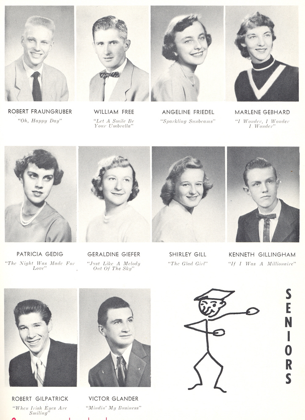 1954 Sheboygan Central High School, Page 29: Robert Fraungruber, William Free, Angeline Friedel, Marlene Gebhard, Patricia Gedig, Geraldine Giefer, Shirley Gill, Kenneth Gillingham, Robert Gilpatrick, Victor Glander.