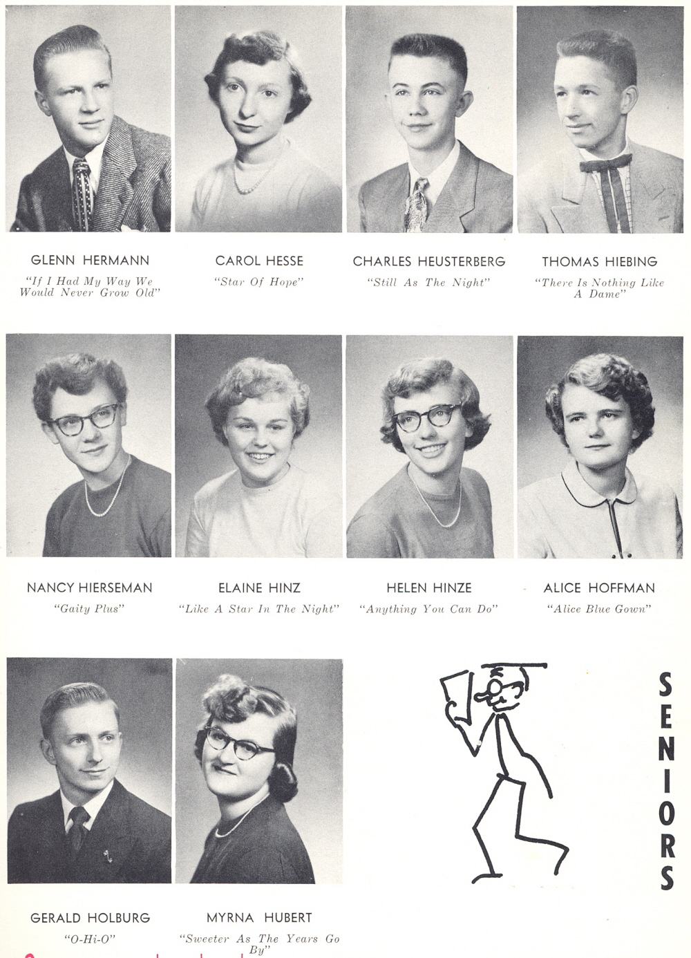 1954 Sheboygan Central High School, Page 33: Glenn Hermann, Carol Hesse, Charles Heusterberg, Thomas Hiebing, Nancy Hierseman, Elaine Hinz, Helen Hinze, Alice Hoffman, Gerald Holburg, Myrna Hubert.