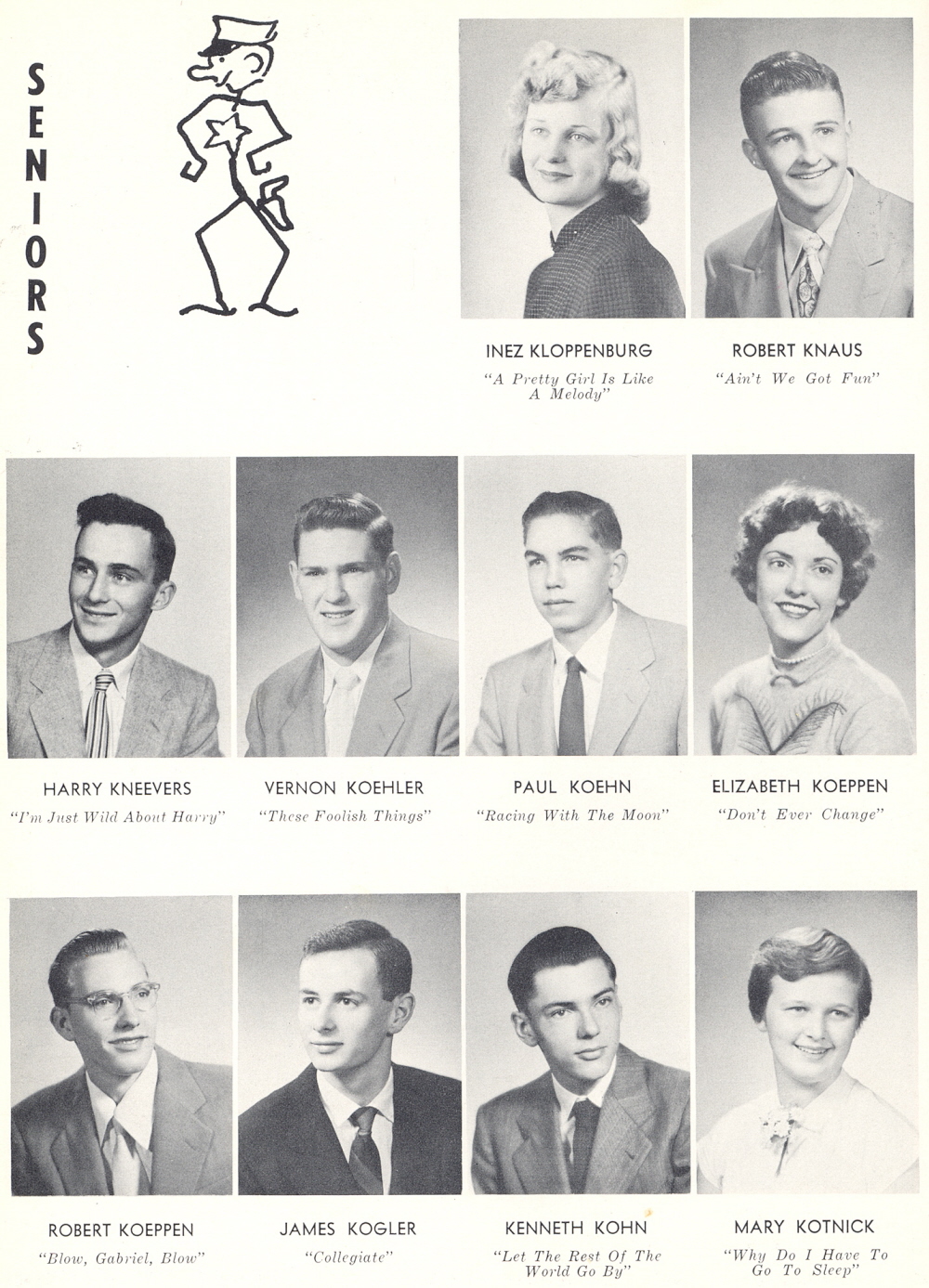 1954 Sheboygan Central High School, Page 36: Inez Kloppenburg, Robert Knaus, Harry Kneevers, Vernon Koehler, Paul Koehn, Elizabeth Koeppen, Robert Koeppen, James Kogler, Kenneth Kohn, Mary Kotnick.