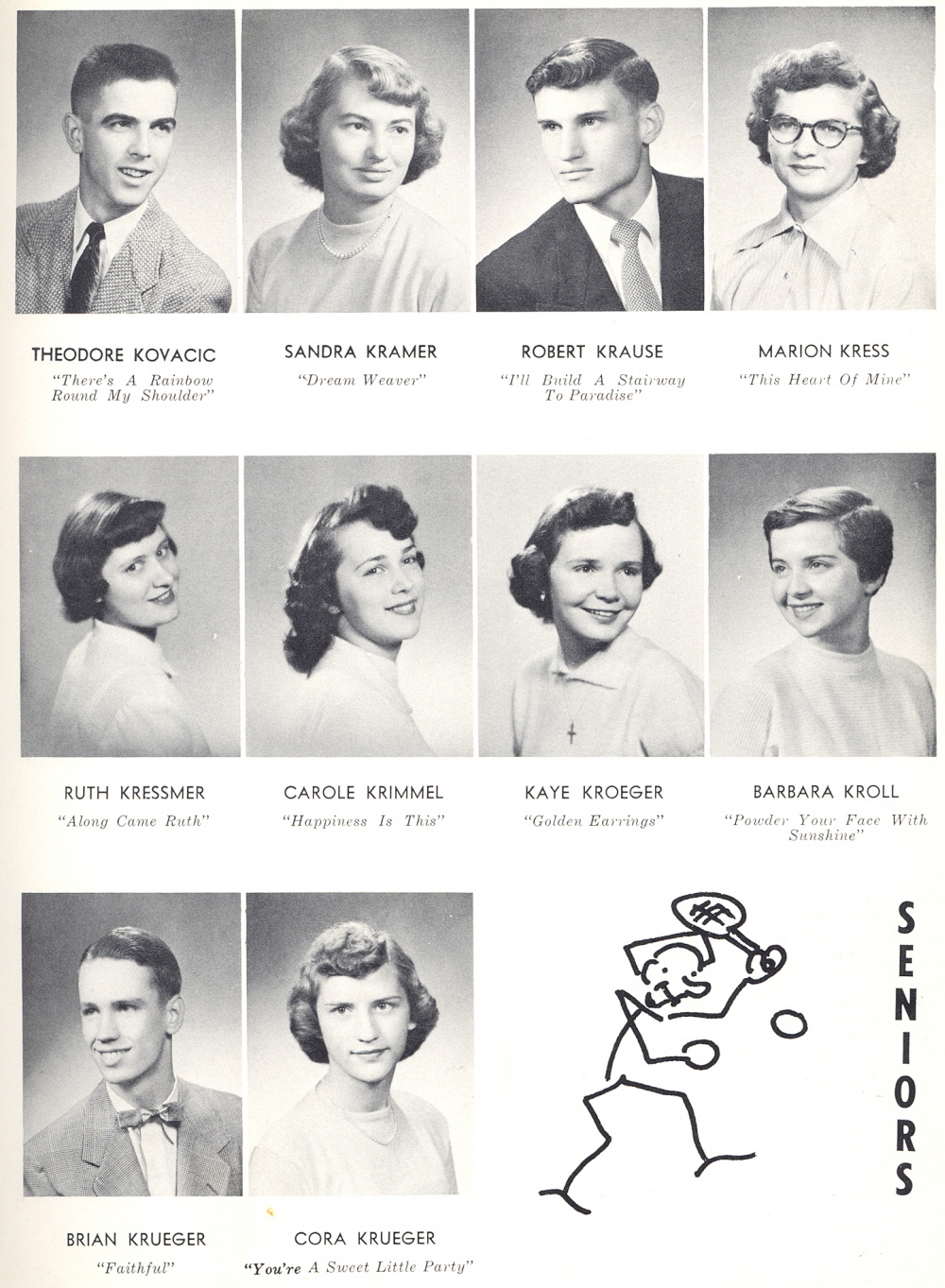 1954 Sheboygan Central High School, Page 37: Theodore Kovacic, Sandra Kramer, Robert Krause, Marion Kress, Ruth Kressmer, Carole Krimmel, Kaye Kroeger, Barbara Kroll, Brian Krueger, Cora Krueger.
