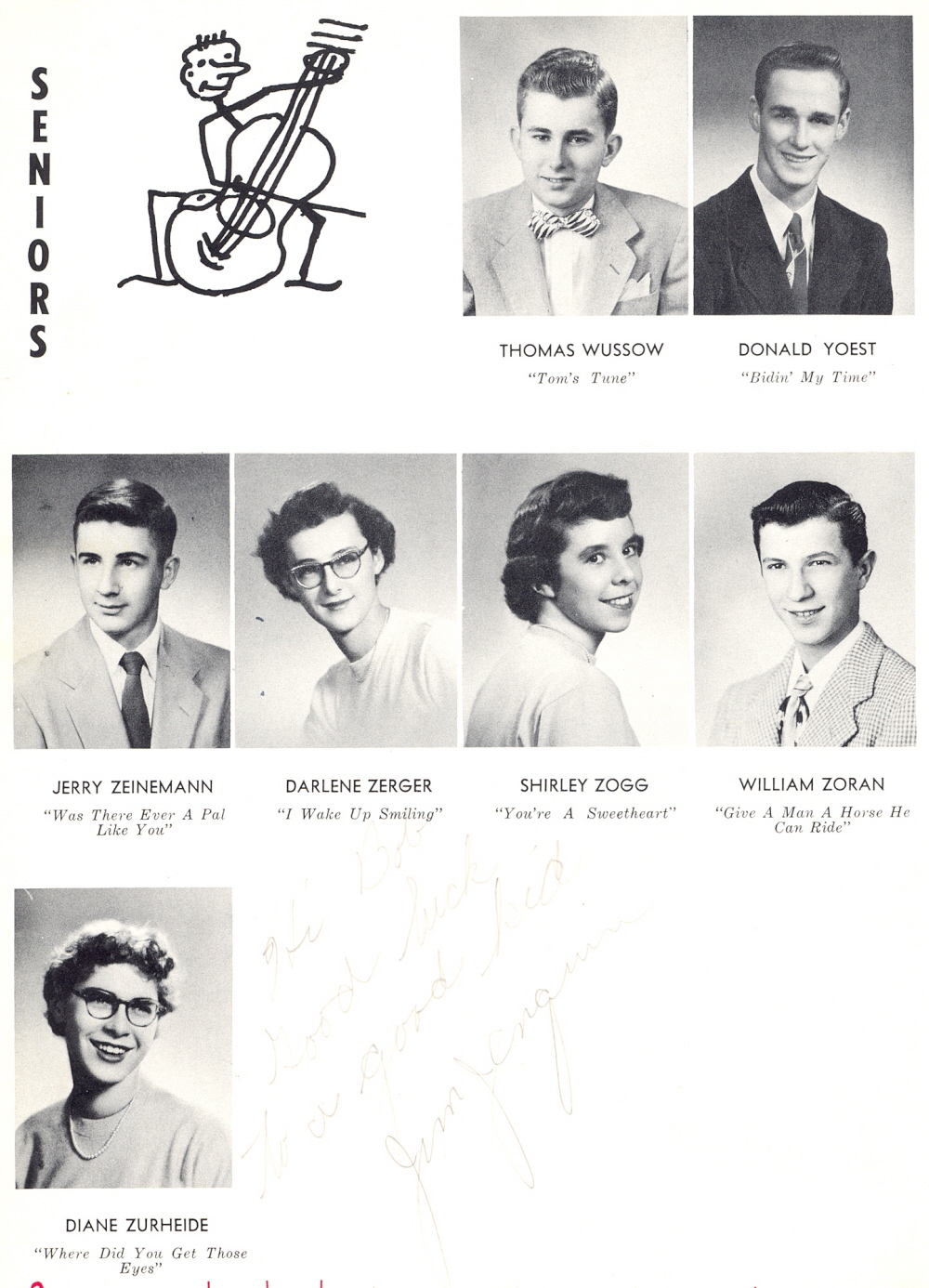 1954 Sheboygan Central High School, Page 58: Thomas Wussow, Donald Yoest, Jerry Zeinemann, Darlene Zerger, Shirley Zogg, William Zoran, Diane Zurheide.