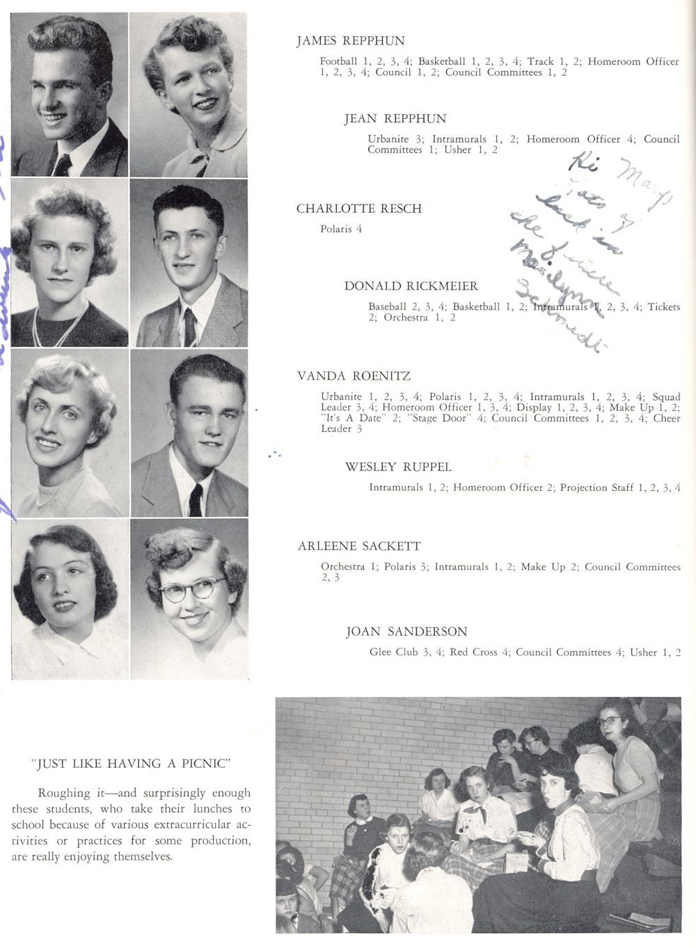 1954 Sheboygan North High School, Page 32: James Repphun, Jean Repphun, Charlotte Resch, Donald Rickmeier, Vanda Roenitz, Wesley Ruppel, Arleene Sackett, Joan Sanderson.