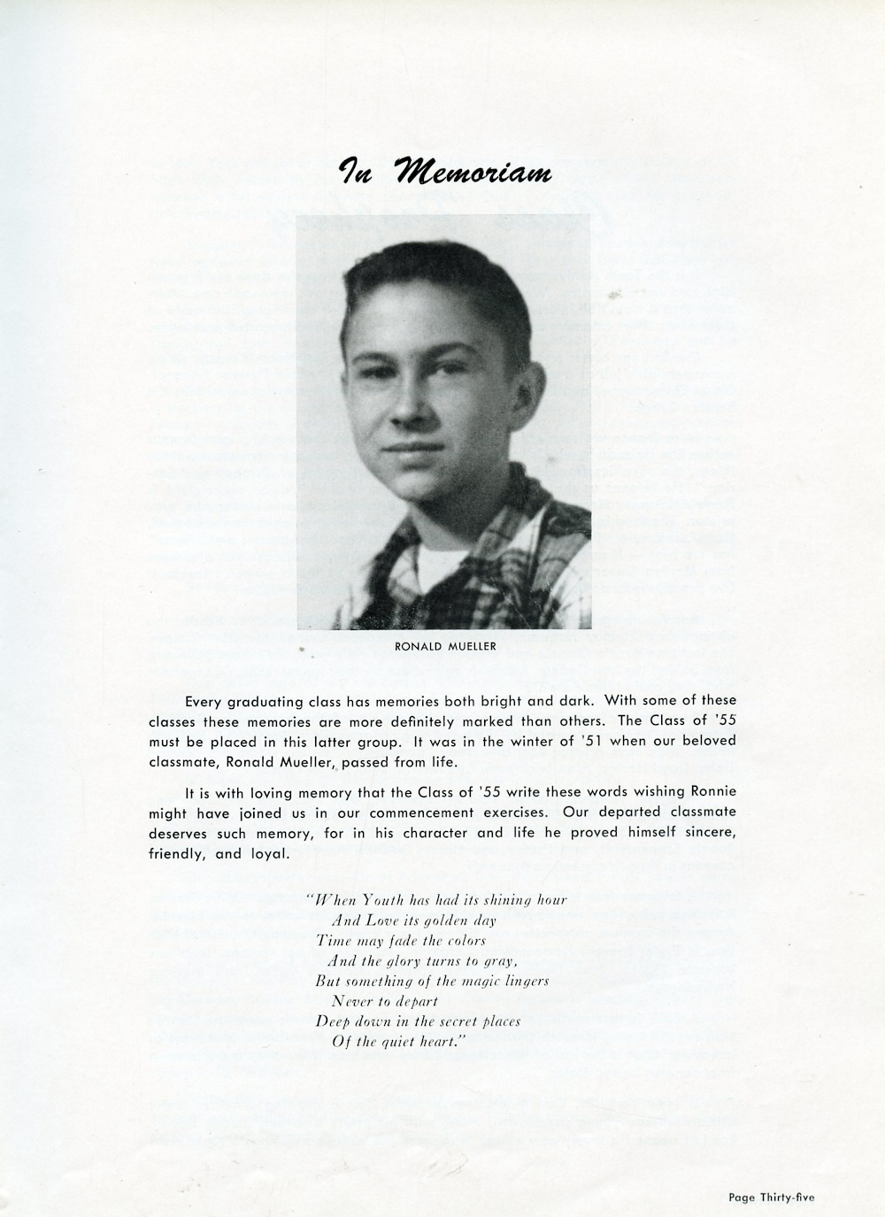 1955 Plymouth High School Yearbook Page 35: Ronald Mueller.