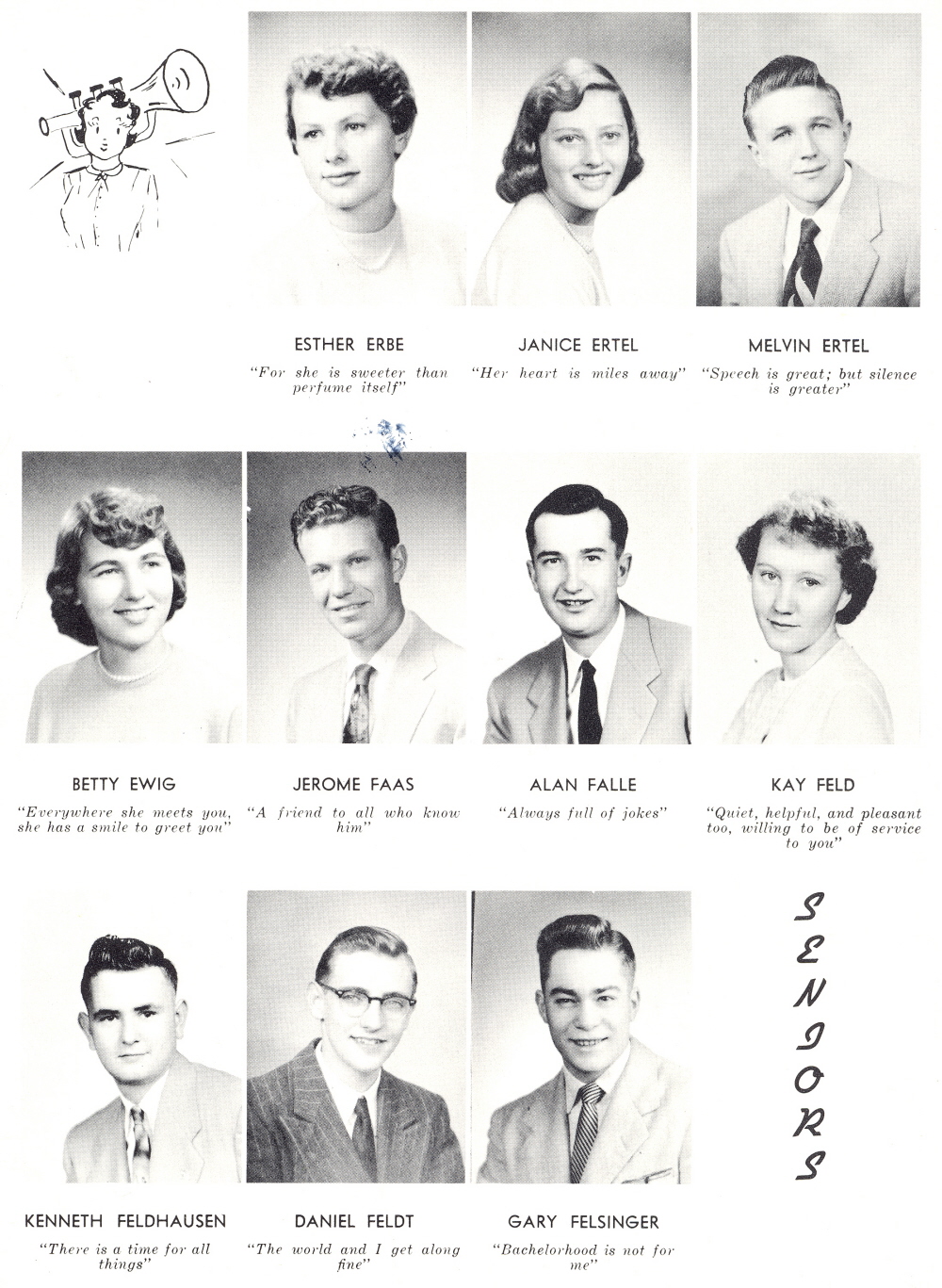 1955 Sheboygan Central High School, Page 30: Esther Erbe, Janice Ertel, Melvin Ertel, Betty Ewig, Jerome Faas, Alan Falle, Key Feld, Kenneth Feldhausen, Daniel Feldt, Gary Felsinger.