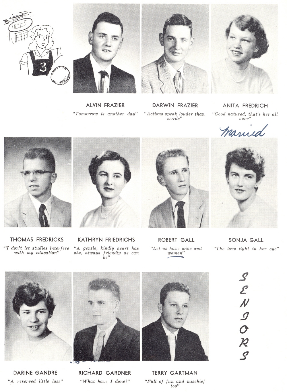 1955 Sheboygan Central High School, Page 32: Alvin Frazier, Darwin Frazier, Anita Fredrich, Thomas Fredricks, Kathryn Friedrichs, Robert Gall, Sonja Gall, Darine Gandre, Richard Gardner, Terry Gartman.
