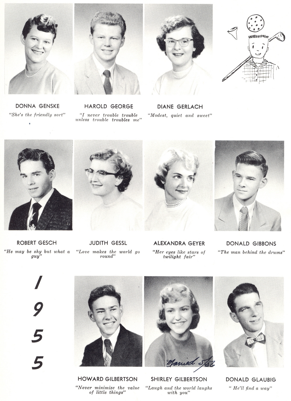 1955 Sheboygan Central High School, Page 33: Donna Genske, Harold George, Diane Gerlach, Robert Gesch, Judith Gessl, Alexandra Geyer, Donald Gibbons, Howard Gilbertson, Shirley Gilbertson, Donald Glaubig.