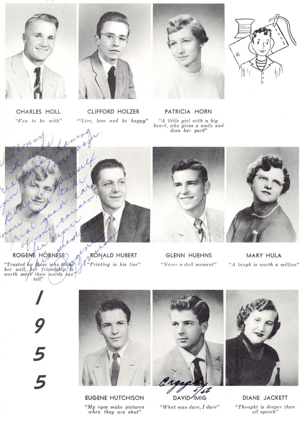 1955 Sheboygan Central High School, Page 37: Charles Holl, Clifford Holzer, Patricia Horn, Rogene Horness, Ronald Hubert, Glenn Huehns, Mary Hula, Eugene Hutchison, David Imig, Diane Jackett.