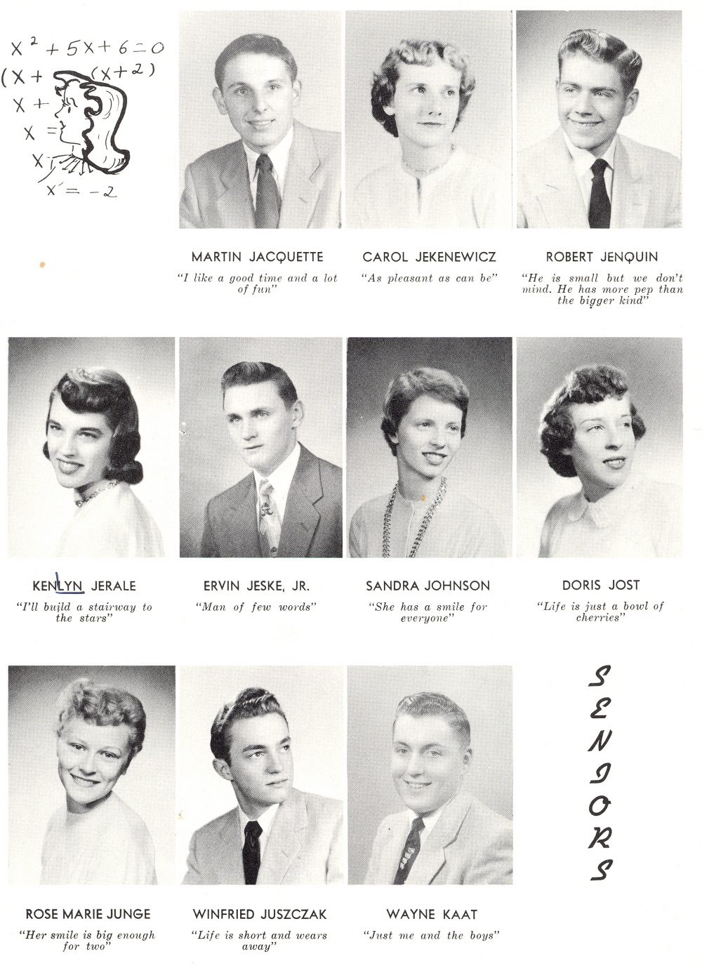 1955 Sheboygan Central High School, Page 38: Martin Jacquette, Carol Jekenewicz, Robert Jenquin, Kenlyn Jerale, Ervin Jeske, Sandra Johnson, Doris Jost, Rose Marie Junge, Winfried Juszczak, Wayne Kaat.