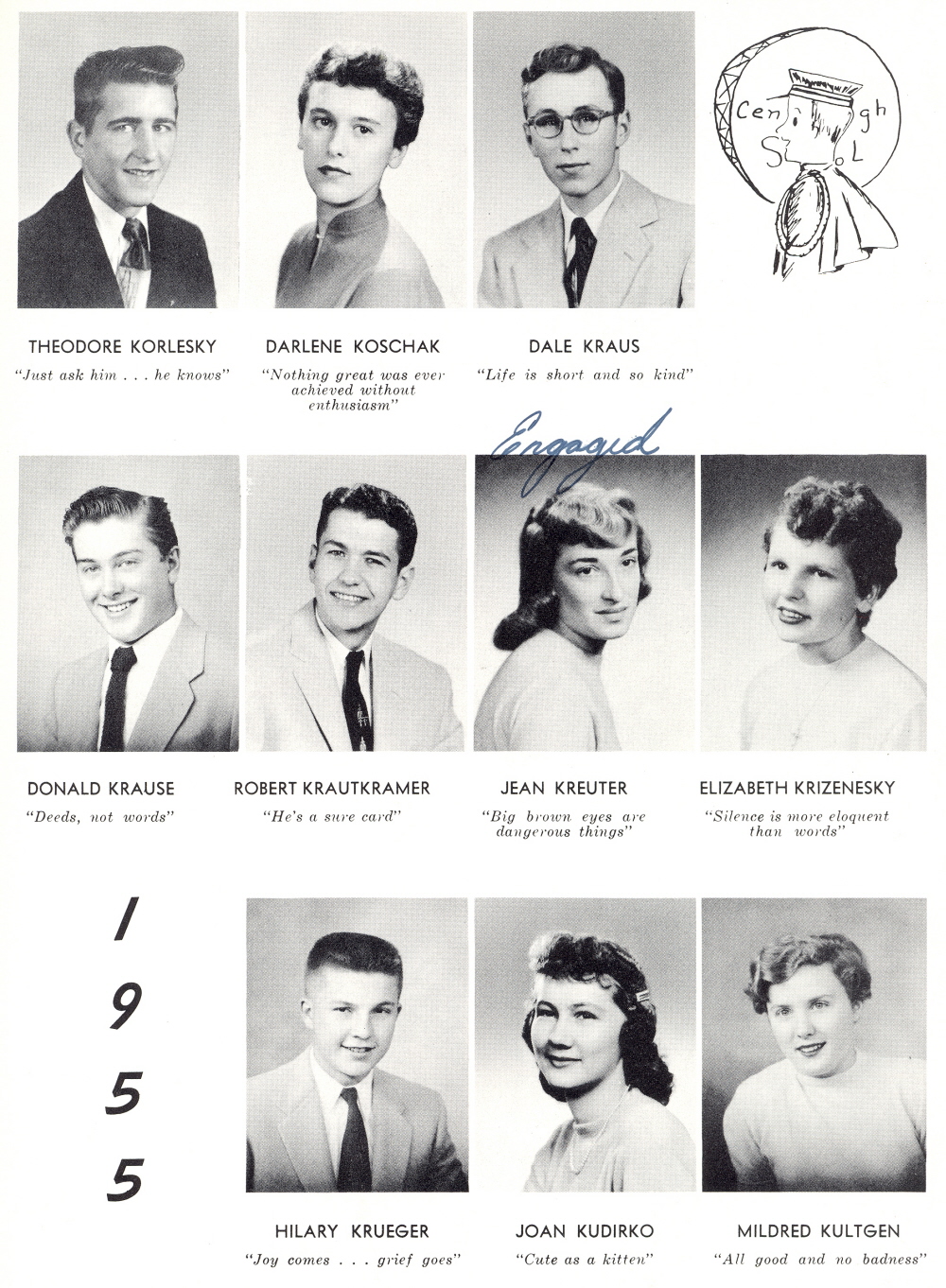 1955 Sheboygan Central High School, Page 41: Theodore Korlesky, Darlene Koschak, Dale Kraus, Donald Krause, Robert Krautkramer, Jean Kreuter, Elizabeth Krizenesky, Hilary Krueger, Joan Kudirko, Mildred Kultgen.