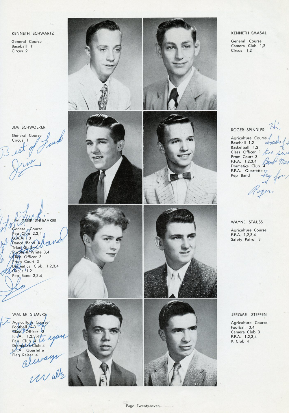 1956 Kiel High School, Page 27: Kenneth Schwartz, Jim Schwoerer, Ila Gene Shumaker, Walter Siemers, Kenneth Smasal, Roger Spindler, Wayne Stauss, Jerome Steffen.