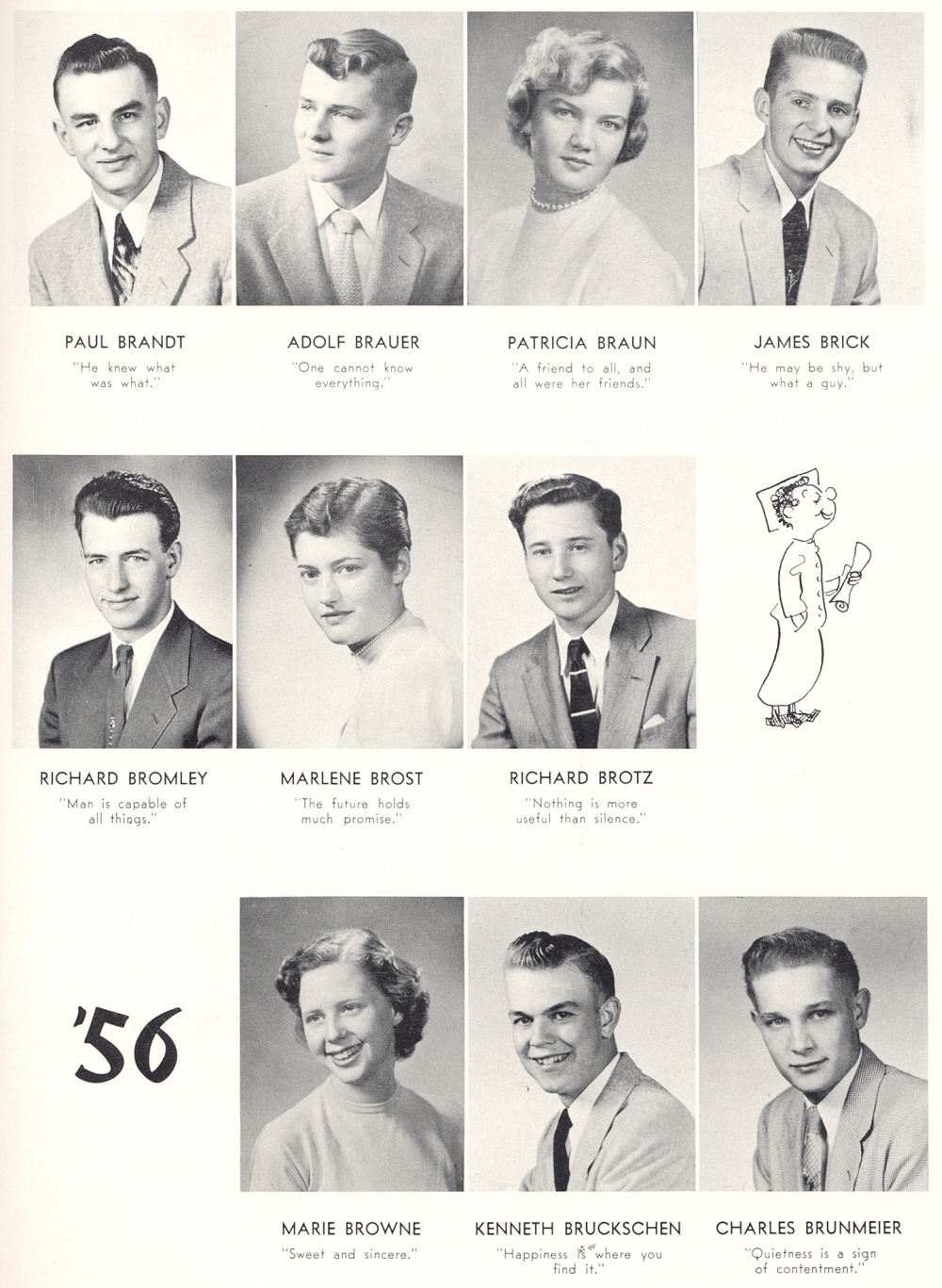 1956 Sheboygan Central High School, Page 25: Paul Brandt, Adolf Brauer, Patricia Braun, James Brick, Richard Bromley, Marlene Brost, Richard Brotz, Marie Browne, Kenneth Bruckschen, Charles Brunmeier.