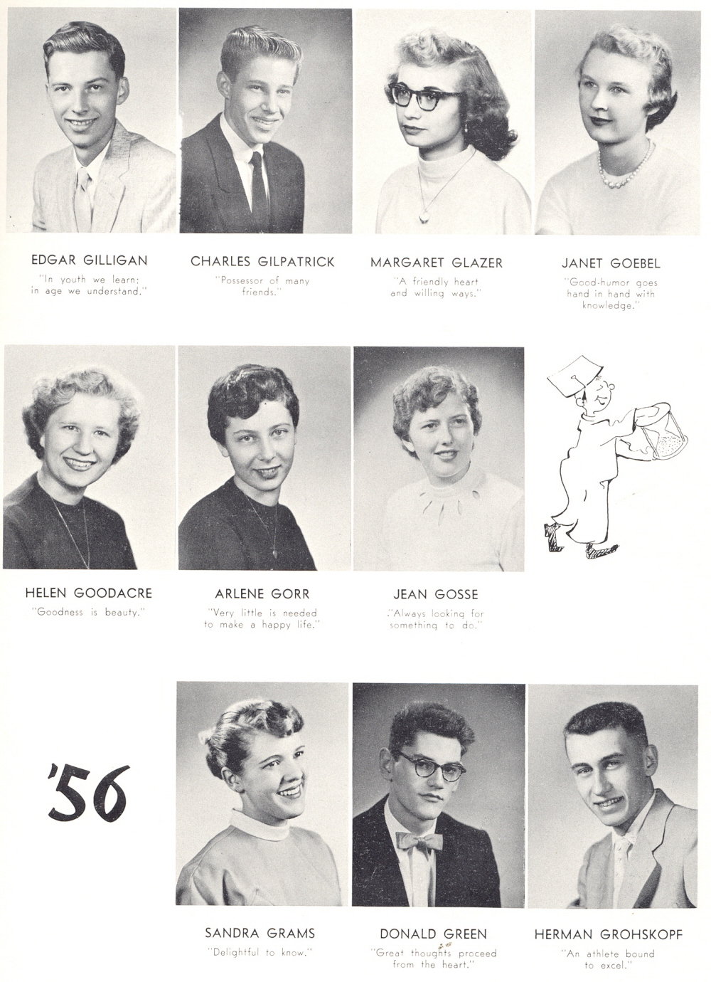 1956 Sheboygan Central High School, Page 31: Edgar Gilligan, Charles Gilpatrick, Margaret Glazer, Janet Goebel, Helen Goodacre, Arlene Gorr, Jean Gosse, Sandra Grams, Donald Green, Herman Grohskopf.