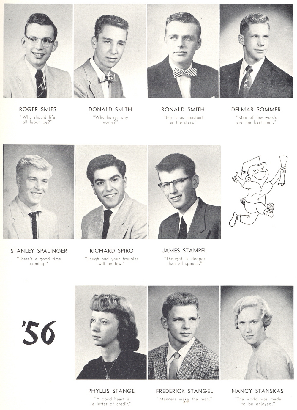 1956 Sheboygan Central High School, Page 53: Roger Smies, Donald Smith Ronald Smith Delmar Sommer, Stanley Spalinger, Richard Spiro, James Stampfl, Phyllis Stange, Frederick Stangel, Nancy Stanskas.
