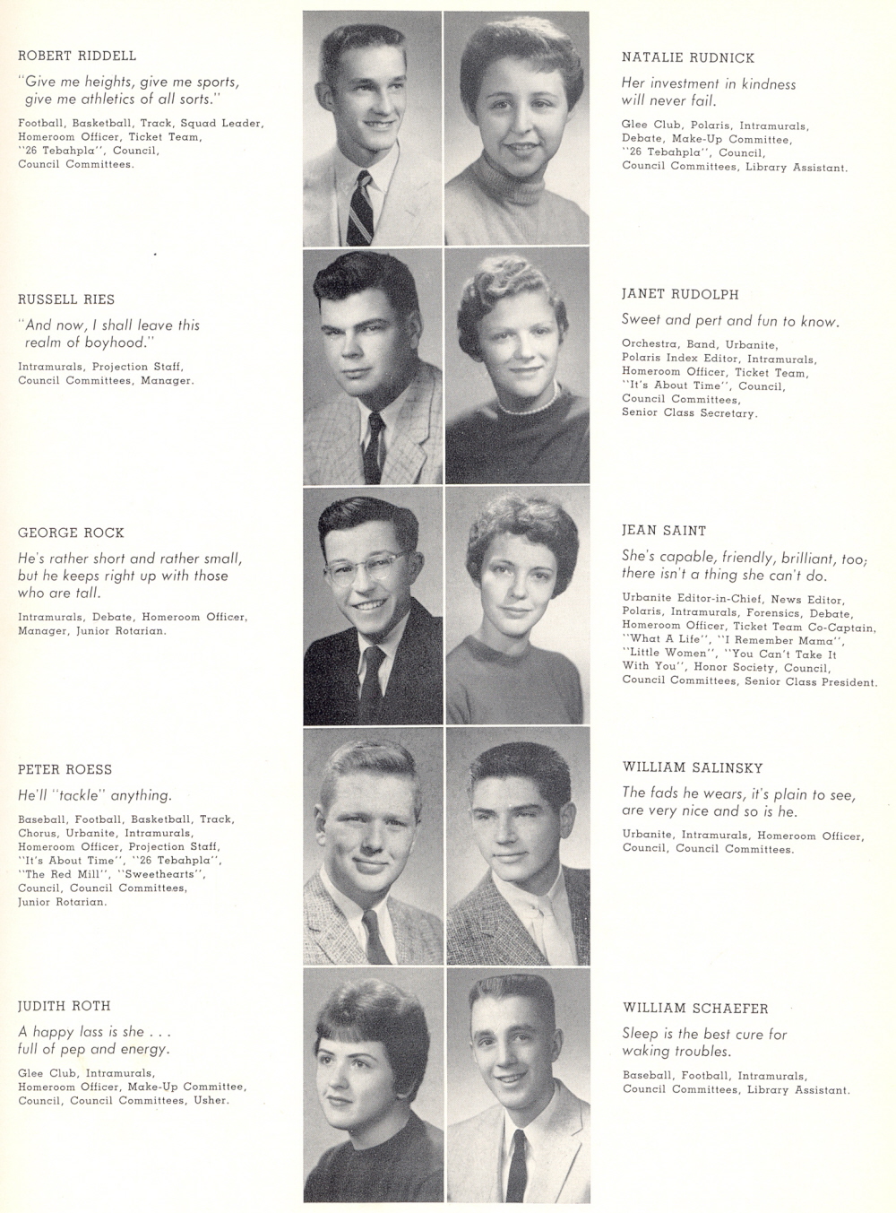 1957 Sheboygan North High School, Page 31: Robert Riddell, Russell Ries, George Rock, Peter Roess, Judith Roth, Natalie Rudnick, Janet Rudolph, Jean Saint, William Salinsky, William Schaefer.