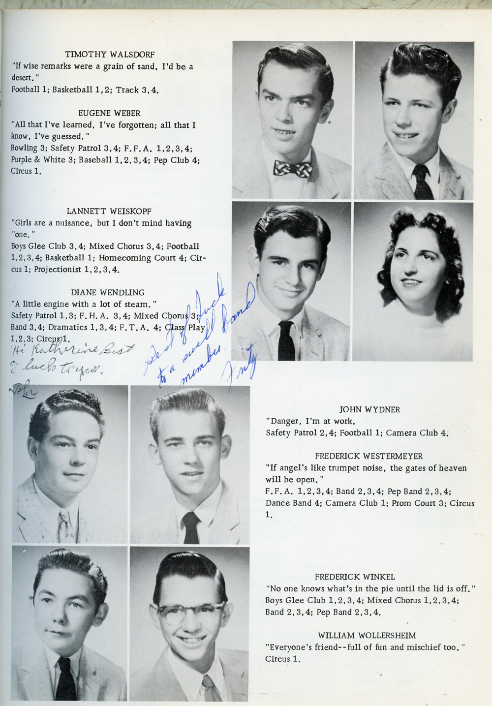 1958 Kiel High School, Page 23: Timothy Walsdorf, Eugene Weber, Lannett Weiskopf, Diane Wendling, John Wydner, Frederick Westermeyer, Frederick Winkel, William Wollersheim.