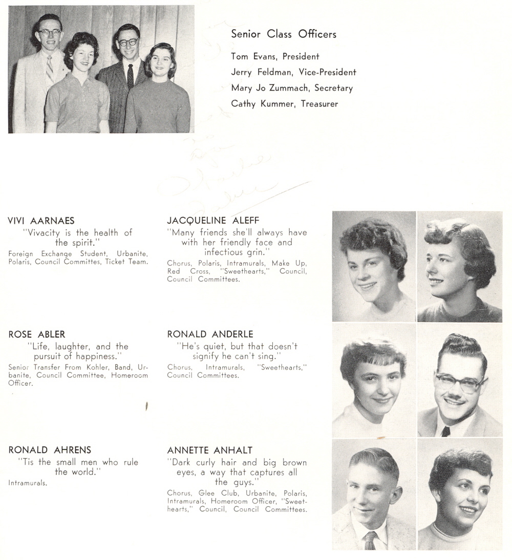 1958 Sheboygan North High School, Page 17: Vivi Aarnaes, Rose Abler, Ronald Ahrens, Jacqueline Aleff, Ronald Anderle, Annette Anhalt.