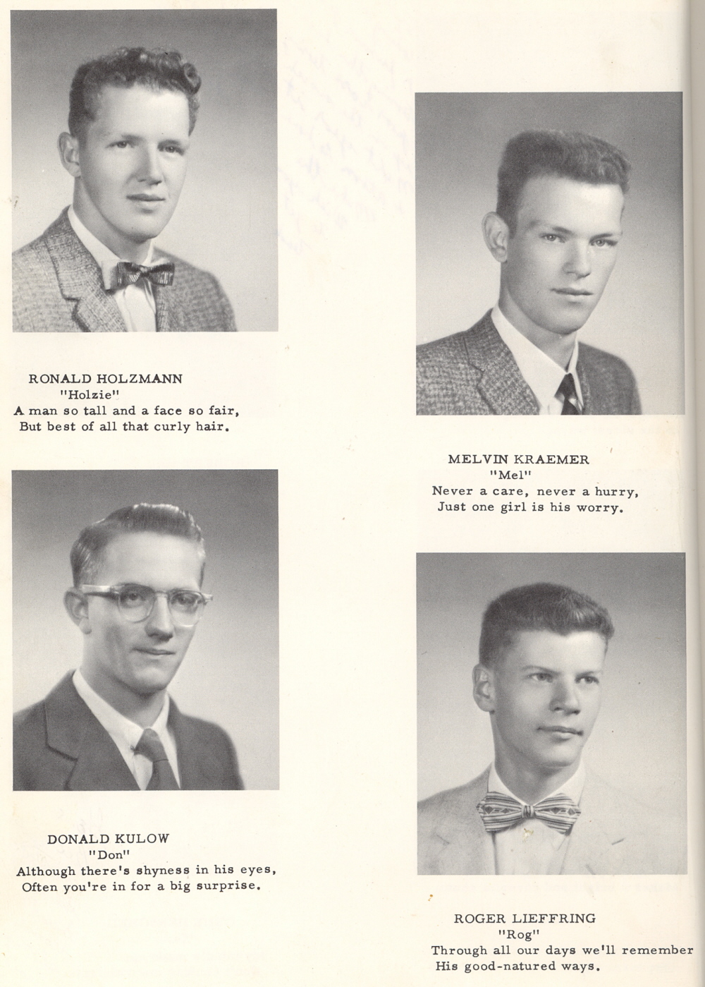 1959 Elkhart Lake High School, Page 12: Ronald Holzmann, Melvin Kraemer, Donald Kulow, Roger Lieffring.