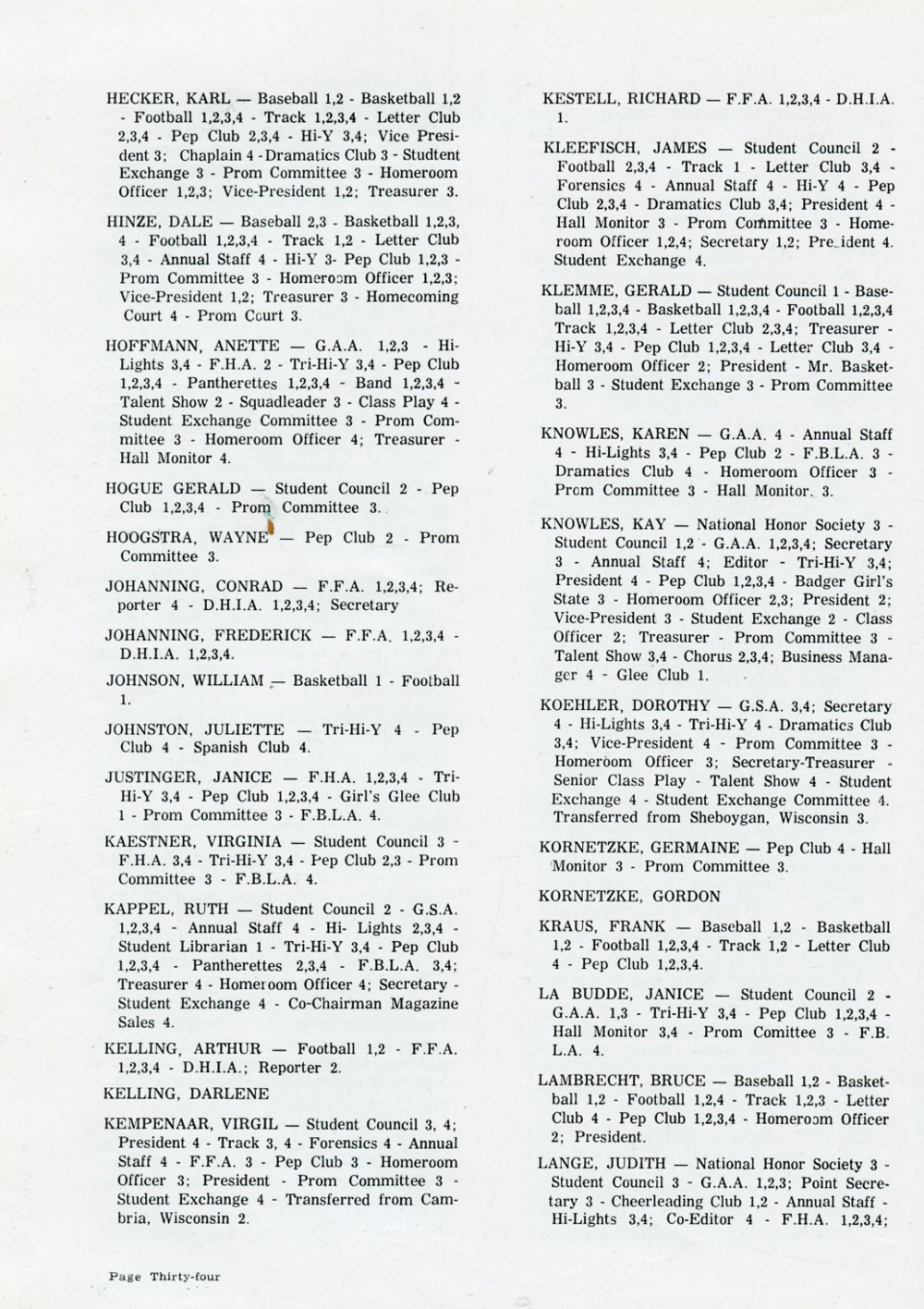 1959 Plymouth High School, Page 34: Senior Directory.