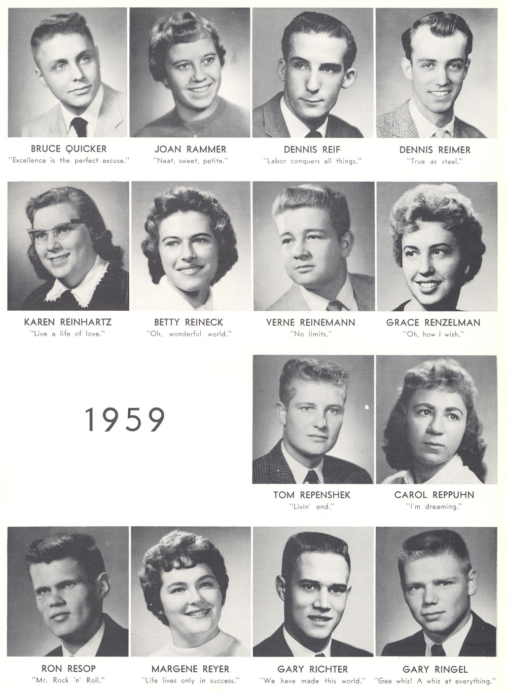 High School, Page 109: Bruce Quicker, Joan Rammer, Dennis Reif, Dennis Reimer, Karen Reinhartz, Betty Reineck, Verne Reinemann, Grace Renzelman, Tom Repenshek, Carol Repphun, Ron Resop, Margene Reyer, Gary Richter, Gary Ringel.