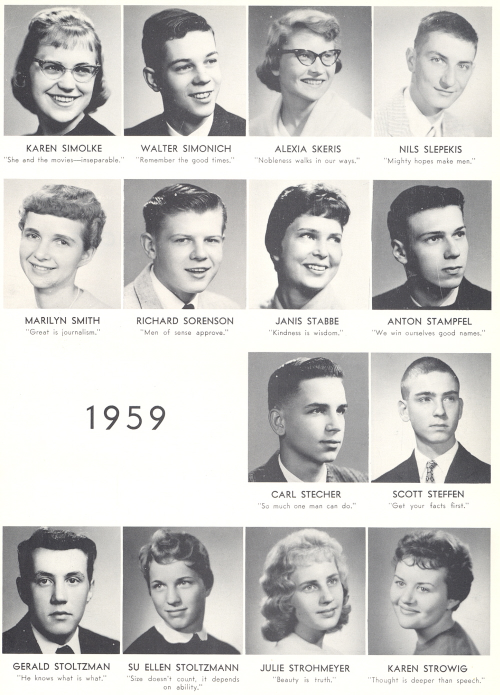 High School, Page 113: Karen Simolke, Walter Simonich, Alexia Skeris, Nils Slepekis, Marilyn Smith, Richard Sorenson, Janis Stabbe, Anton Stampfel, Carl Stecher, Scott Steffen, Gerald Stoltzman, Su Ellen Stoltzmann, Julie Strohmeyer, Karen Strowig.