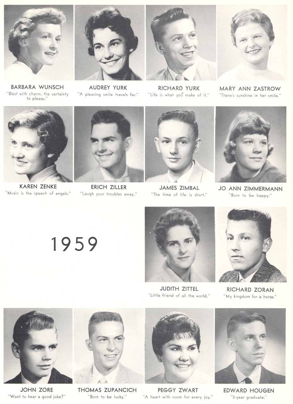 High School, Page 117: Barbara Wunsch, Audrey Yurk, Richard Yurk, Mary Ann Zastrow, Karen Zenke, Erich Ziller, James Zimbal, Jo Ann Zimmermann, Judith Zittel, Richard Zoran, John Zore, Thomas Zupancich, Peggy Zwart, Edward Hougen.