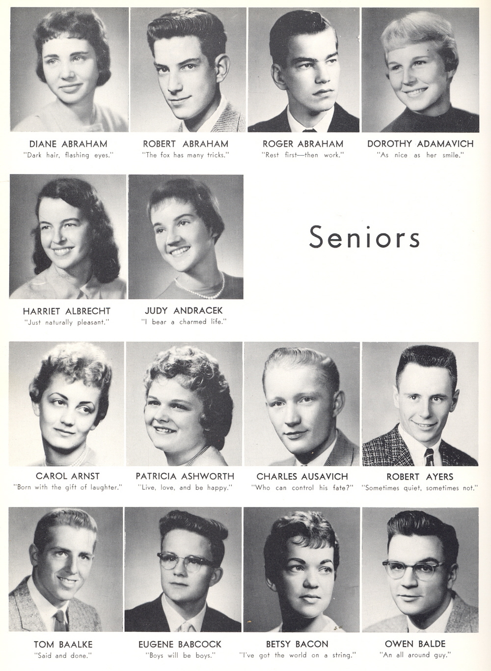 High School, Page 90: Diane Abraham, Robert Abraham, Roger Abraham, Dorothy Adamavich, Harriet Albrecht, Judy Andracek, Carol Arnst, Patricia Ashworth, Charles Ausavich, Robert Ayers, Tom Baalke, Eugene Babcock, Betsy Bacon, Owen Balde.