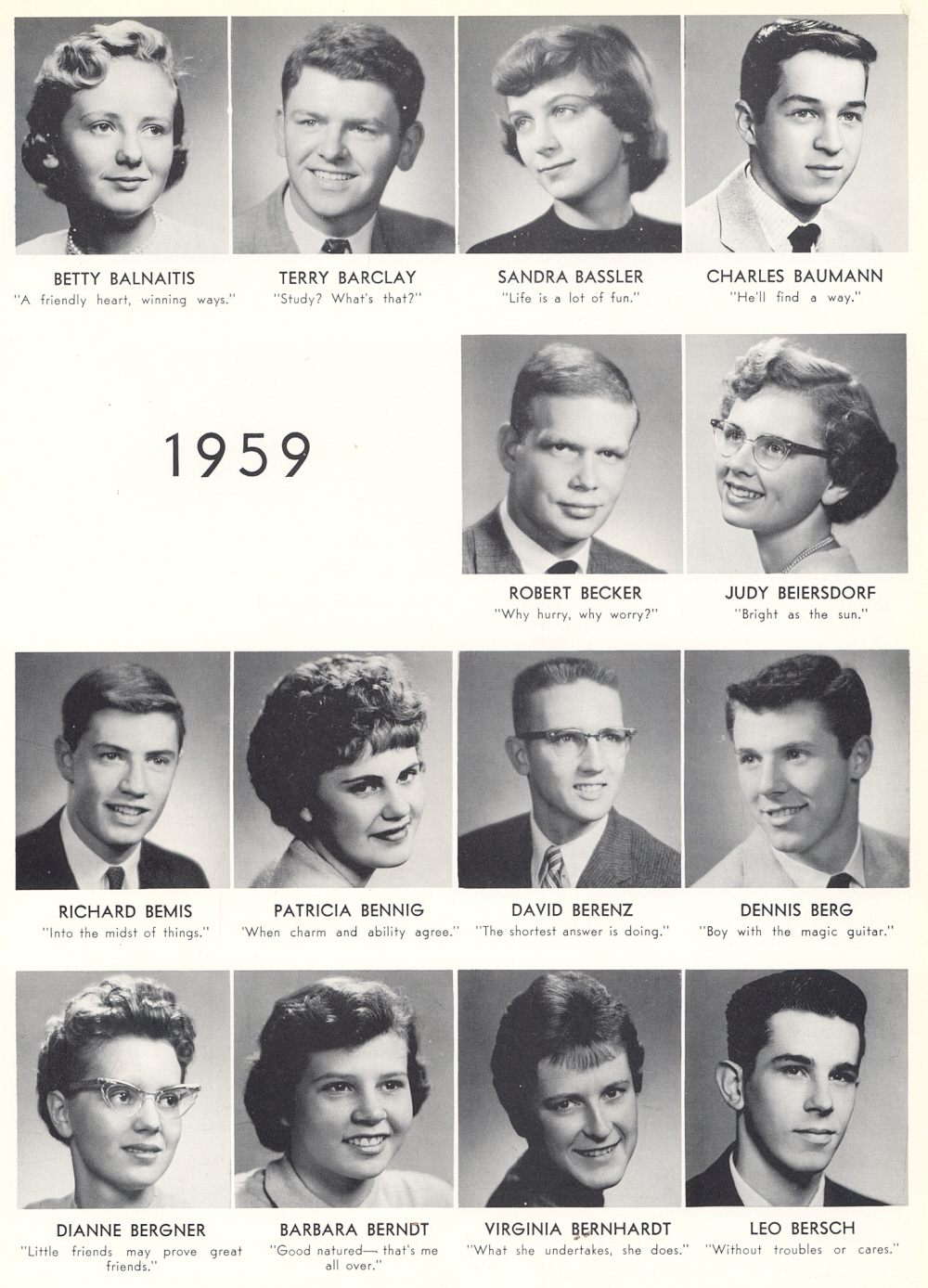 High School, Page 91: Betty Balnaitis, Terry Barclay, Sandra Bassler, Charles Baumann, Robert Becker, Judy Beiersdorf, Richard Bemis, Patricia Bennig, David Berenz, Dennis Berg, Dianne Bergner, Barbara Berndt, Virginia Bernhardt, Leo Bersch.