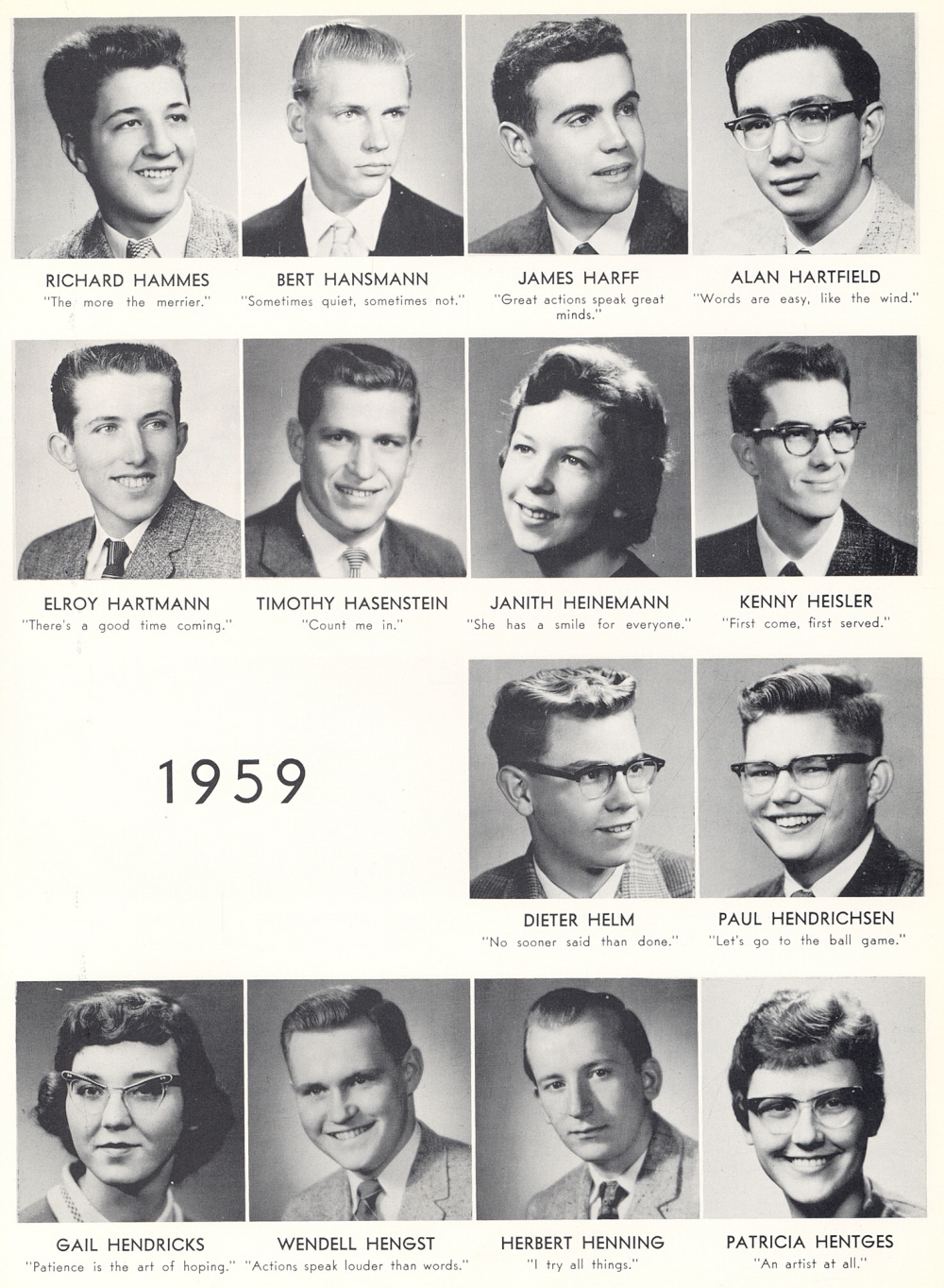 High School, Page 97: Richard Hammes, Bert Hansmann, James Harff, Alan Hartfield, Elroy Hartmann, Timothy Hasenstein, Janith Heinemann, Kenny Heisler, Dieter Helm, Paul Hendrichsen, Gail Hendricks, Wendell Hengst, Herbert Henning, Patricia Hentges.