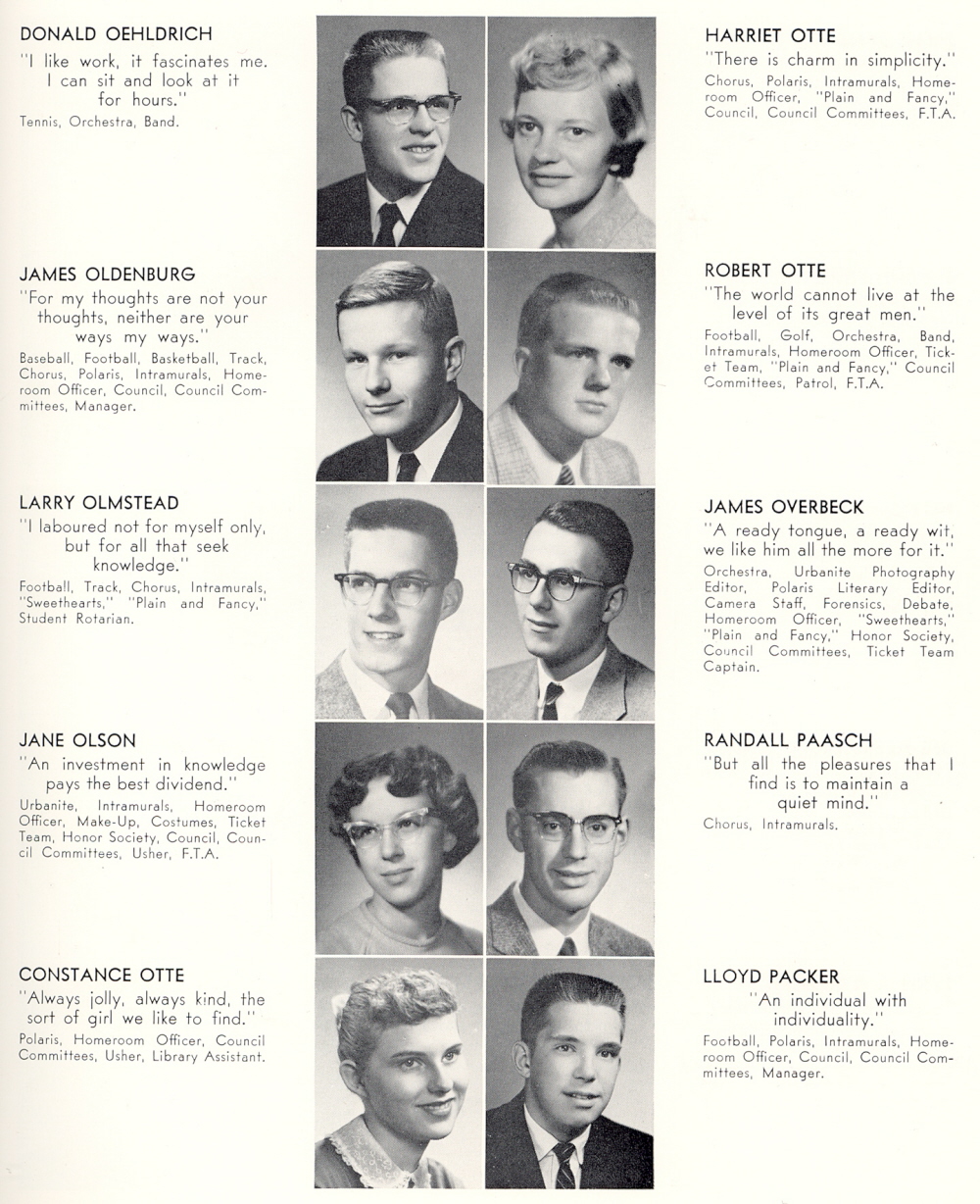 1959 Sheboygan North High School, Page 29: Donald Oehldrich, James Oldenburg, Larry Olmstead, Jane Olson, Constance Otte, Harriet Otte, Robert Otte, James Overbeck, Randall Paasch, Lloyd Packer.