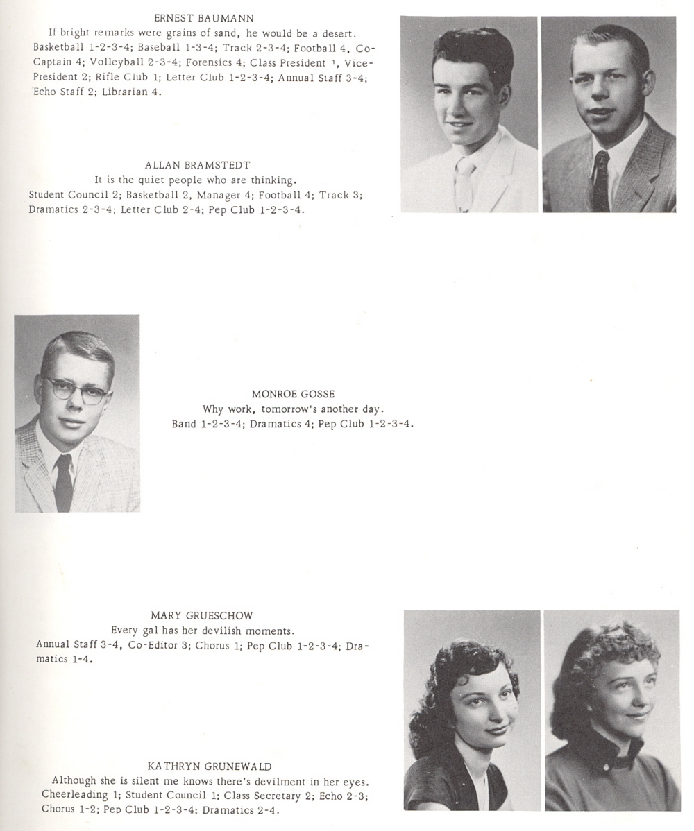 1960 Howards Grove High School, Page 11: Ernest Baumann, Allan Bramstedt, Monroe Gosse, Mary Grueschow, Kathryn Grunewald.
