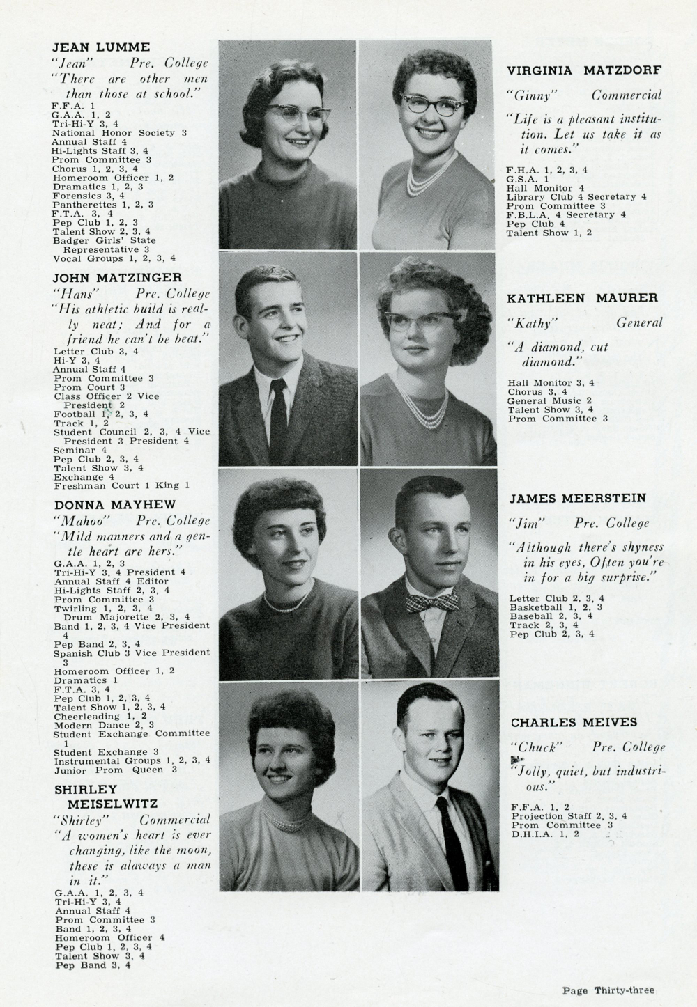 1960 Plymouth High School, Page 33: Jean Lumme, Virginia Matzdorf, John Matzinger, Kathleen Maurer, Donna Mayhew, James Meerstein, Shirley Meiselwitz, Charles Meives.