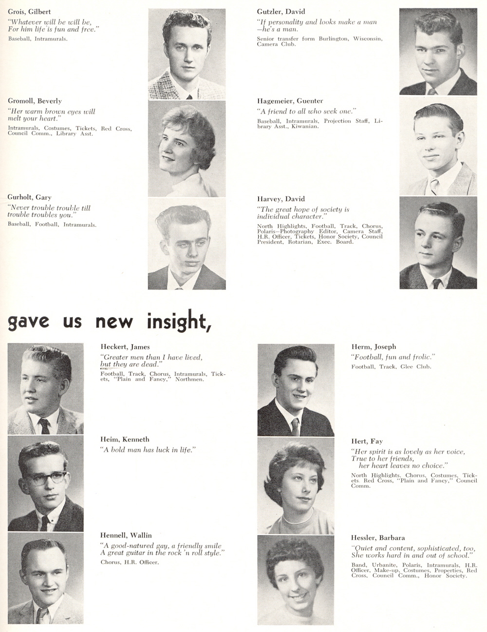 1960 Sheboygan North High School, Page 25: Gilbert Grois, Beverly Gromoll, Gary Gurholt, David Gutzler, Guenter Hagemeier, David Harvey, James Heckert, Kenneth Heim, Wallin Hennell, Joseph Herm, Fay Hert, Barbara Hessler.