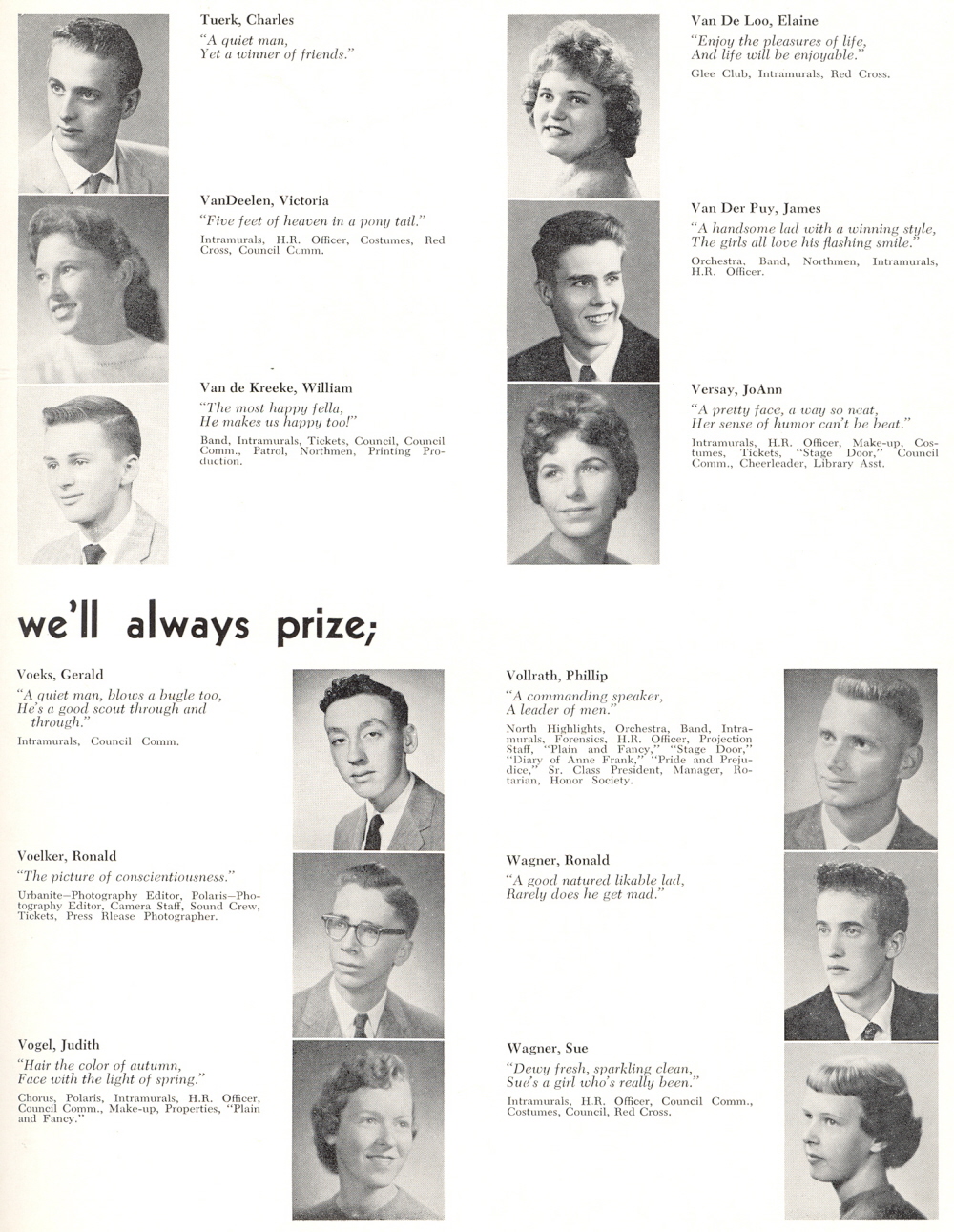 1960 Sheboygan North High School, Page 35: Charles Tuerk, Victoria VanDeelen, William Van de Kreeke, Elaine Van De Loo, James Van Der Puy, JoAnn Versay, Gerald Voeks, Ronald Voelker, Judith Vogel, Phillip Vollrath, Ronald Wagner, Sue Wagner.