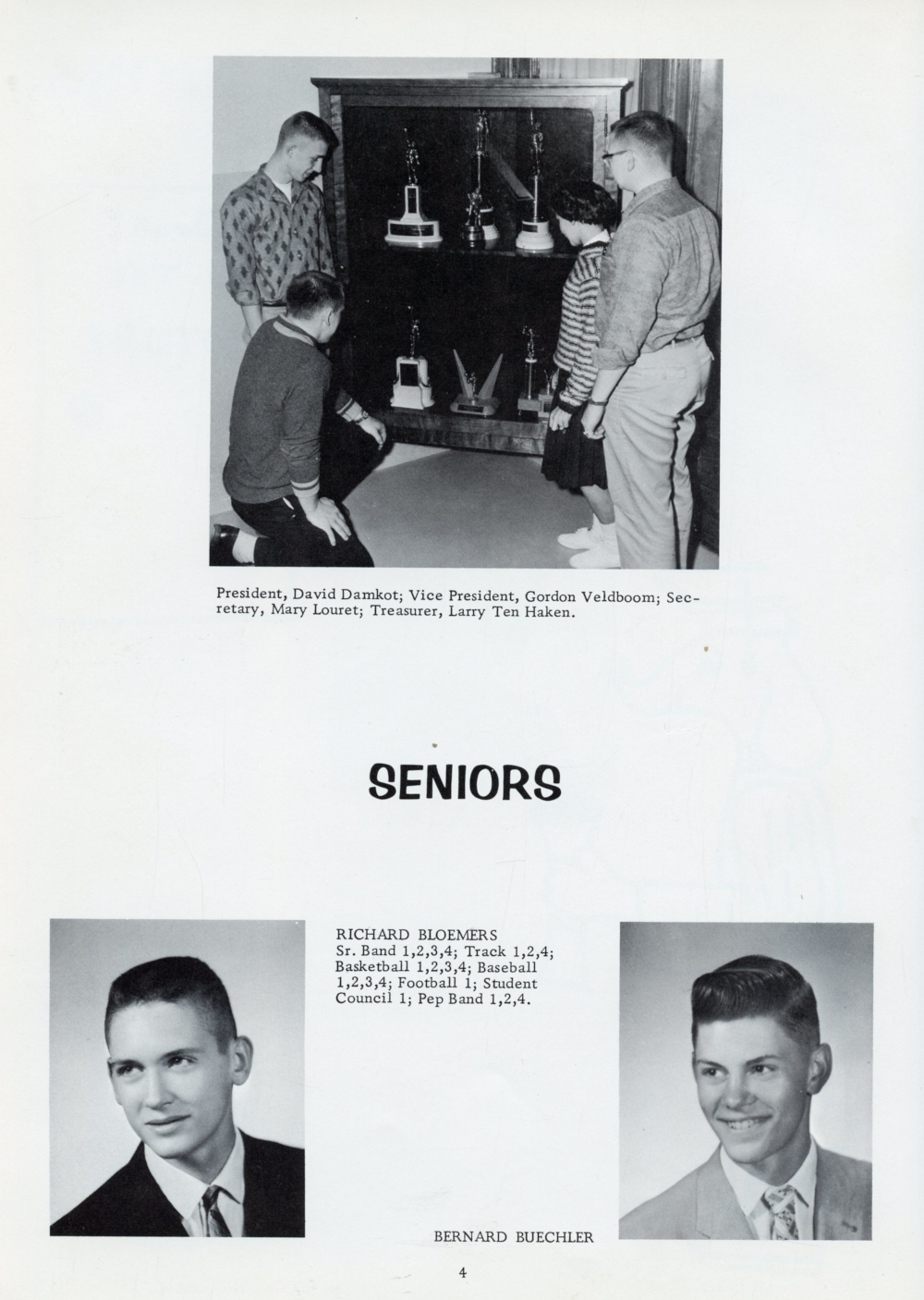 1961 Oostburg High School Yearbook Page 4: Richard Bloemers, Bernard Buechler.