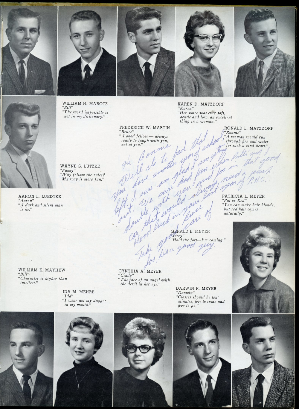 William E. Mayhew, Ida M. Mehre, Cynthia A. Meyer, Darwin R. Meyer, Gerald E. Meyer, Patricia L. Meyer.