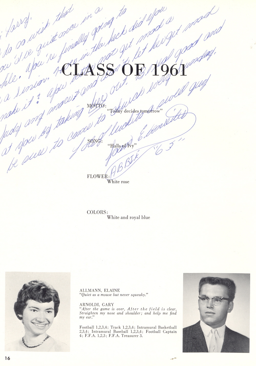1961 Sheboygan Falls High School, Page 16: Elaine Allmann, Gary Arnoldi.