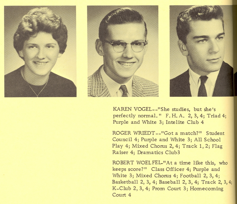 1962 Kiel High School, Page 14: Karen Vogel, Roger Wriedt, Robert Woelfel.