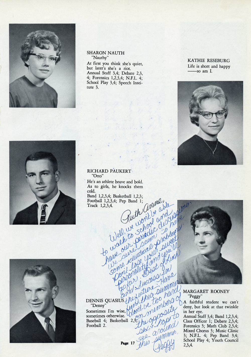 1962 Kohler High School Yearbook, Page 17: Sharon Nauth, Richard Paukert, Dennis Quasius, Kathie Reseburg, Margaret Rooney.