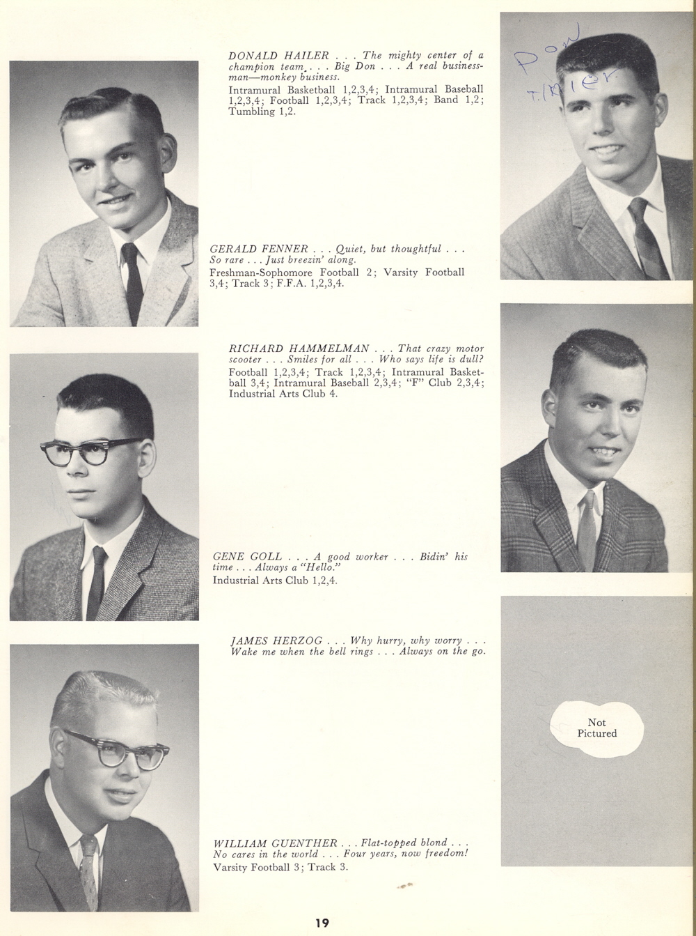 1962 Sheboygan Falls High School, Page 19: Gerald Fenner, Gene Goll, William Guenther, Donald Hailer, Richard Hammelman, James Herzog.
