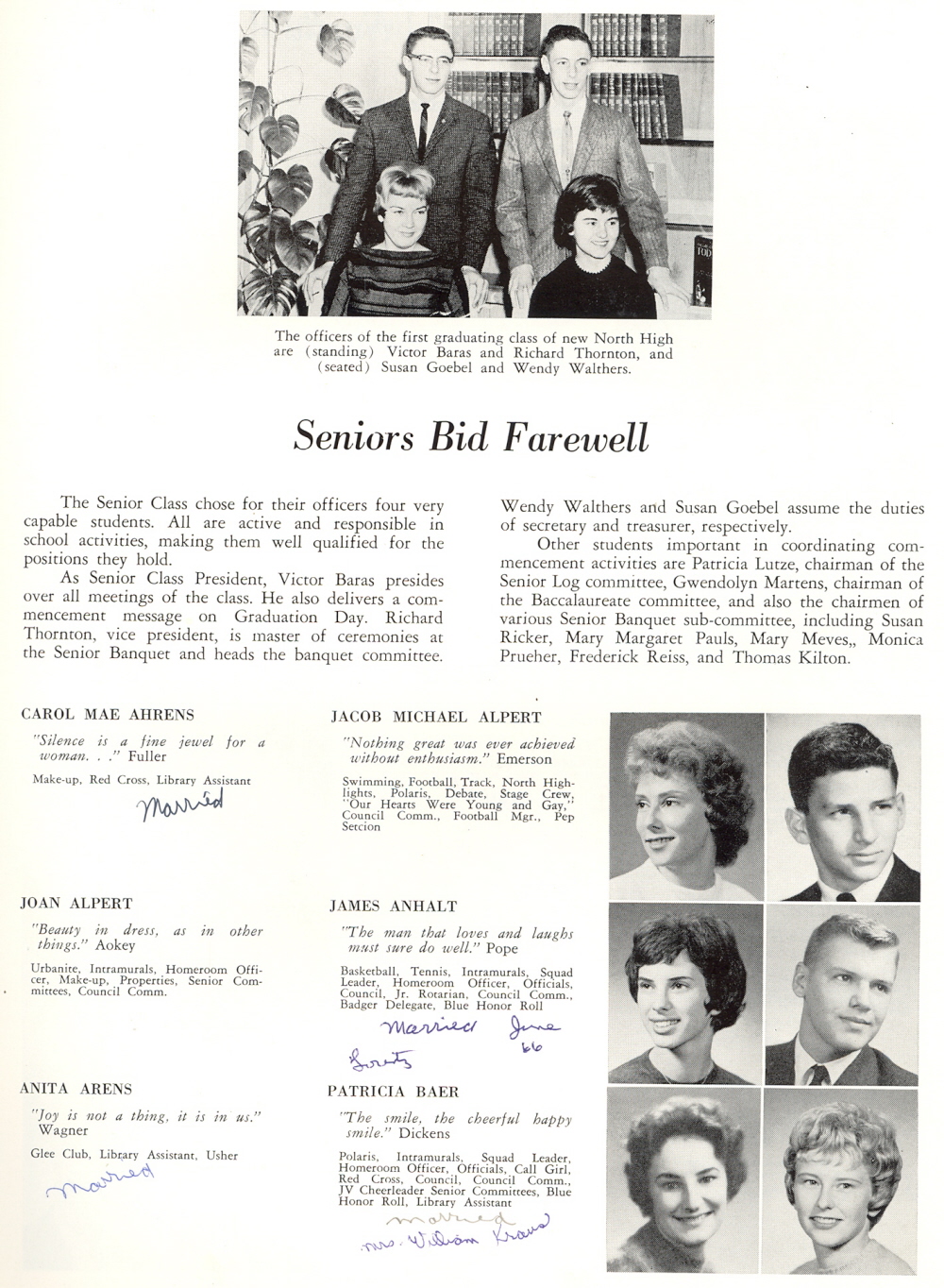 1962 Sheboygan North High School, Page 35: Carol Ahrens, Jacob Alpert, Joan Alpert, James Anhalt, Anita Arens, Patricia Baer.
