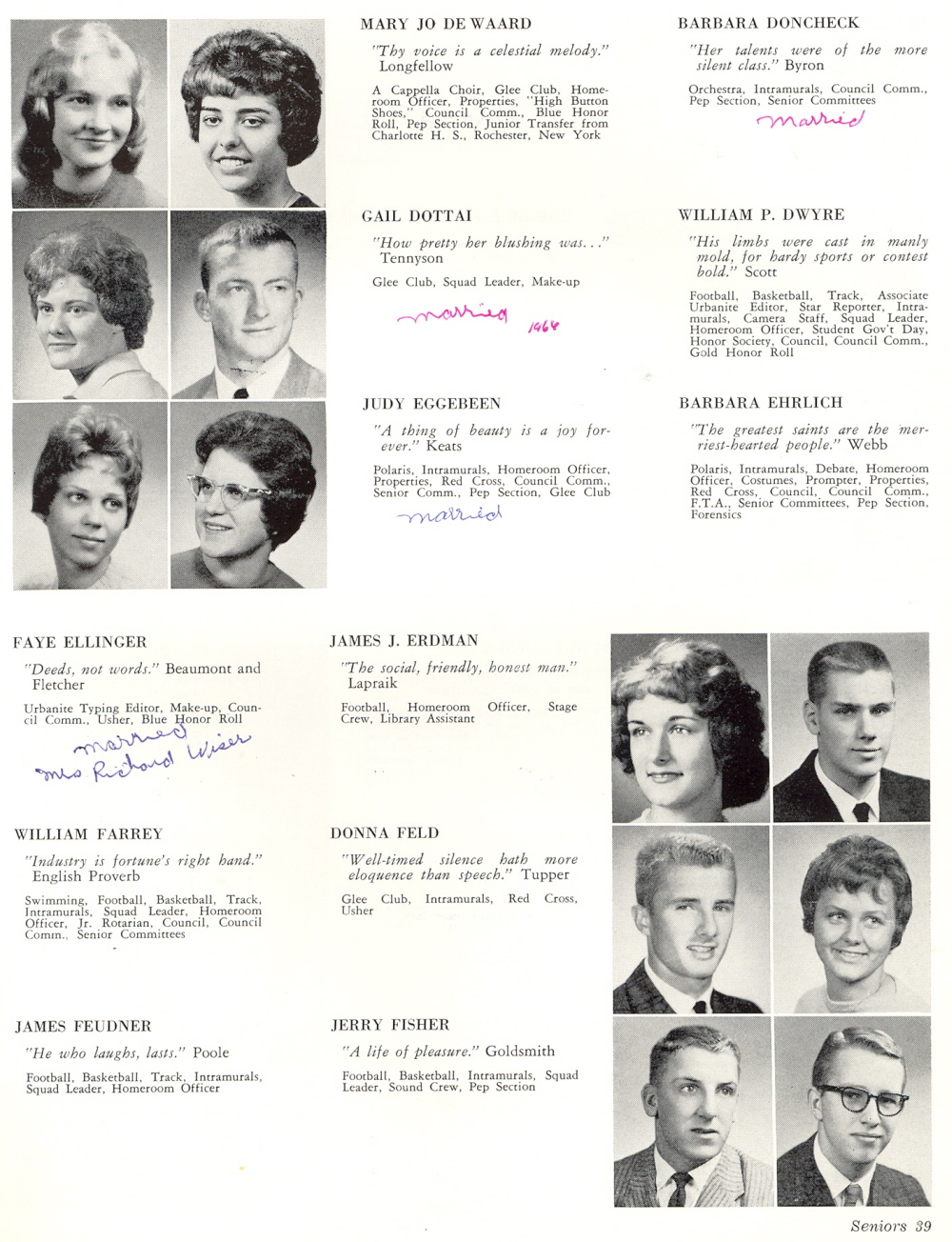 1962 Sheboygan North High School, Page 39: Mary De Waard, Barbara Doncheck, Gail Dottai, William Dwyre, Judy Eggebeen, Barbara Ehrlich, Faye Ellinger, James Erdman, William Farrey, Donna Feld, James Feudner, Jerry Fisher.