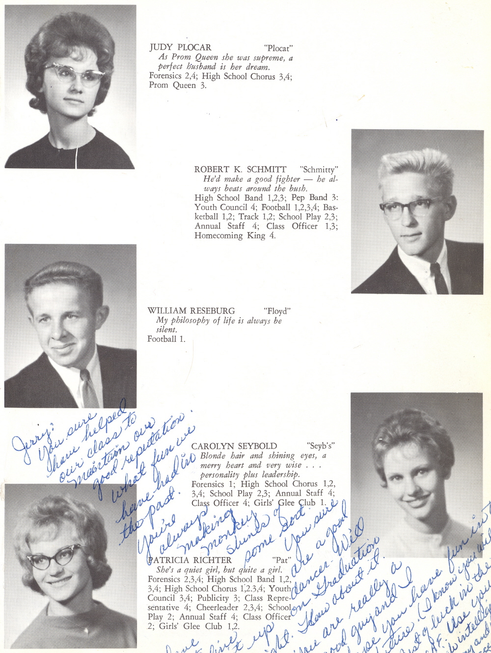1963 Kohler High School, Page 17: Judy Plocar, Robert Schmitt, William Reseburg, Carolyn Seybold, Patricia Richter.