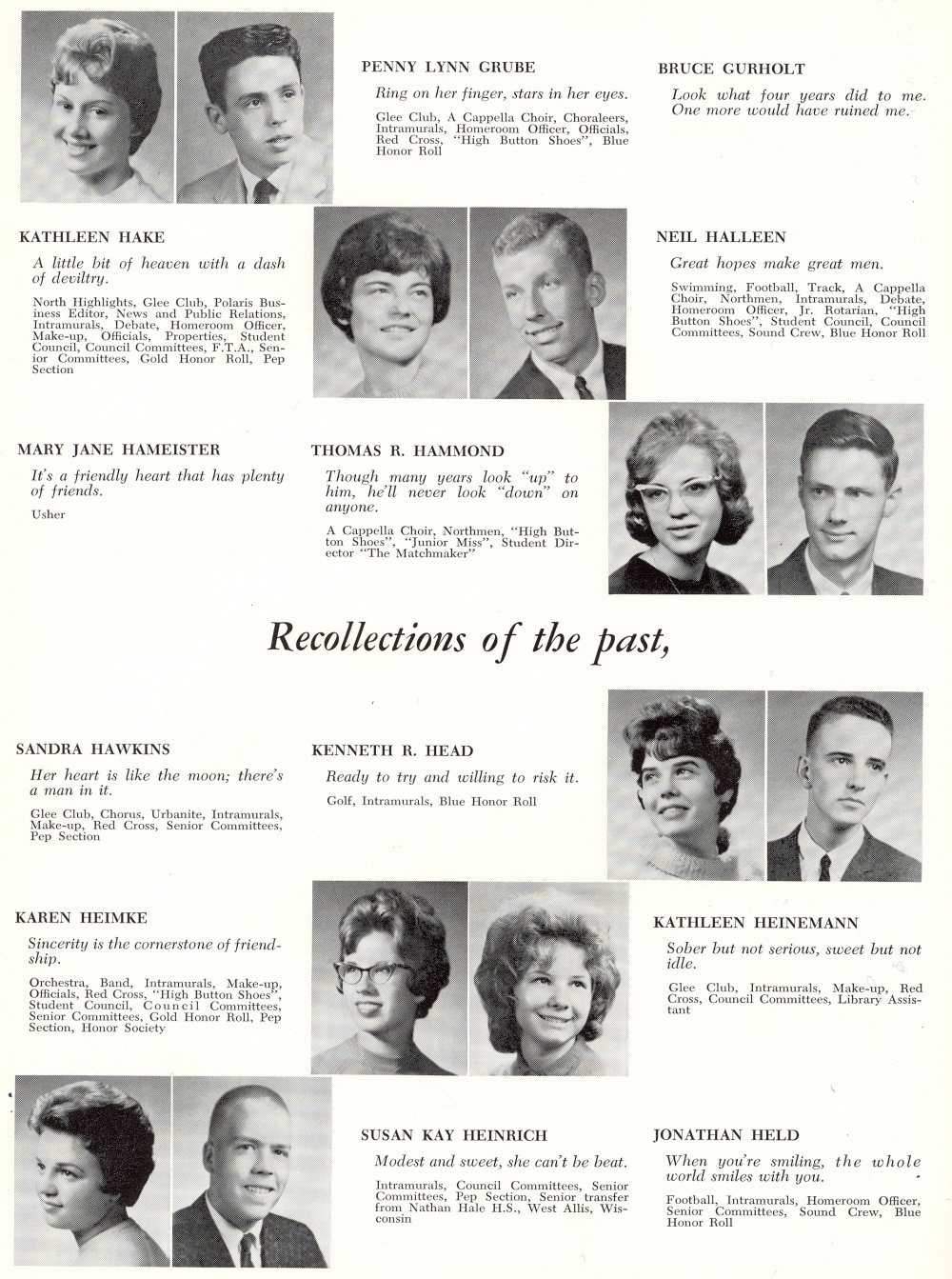 1963 Sheboygan North High School, Page 46: Penny Lynn Grube, Bruce Gurholt, Kathleen Hake, Neil Halleen, Mary Jane Hameister, Thomas Hammond, Sandra Hawkins, Kenneth Head, Karen Heimke, Kathleen Heinemann, Susan Kay Heinrich, Jonathan Held.