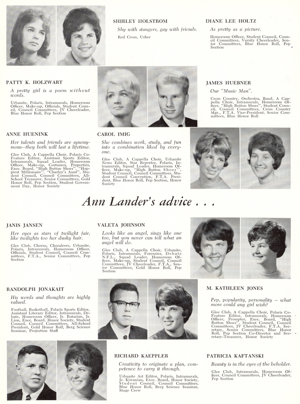 1963 Sheboygan North High School, Page 48: Shirley Holstrom, Diane Lee Holtz, Patty Holzwart, James Huebner, Anne Huenink, Carol Imig, Janis Jansen, Valeta Johnson, Randolph Jonakait, M. Kathleen Jones, Richard Kaeppler, Patricia Kaftanski.